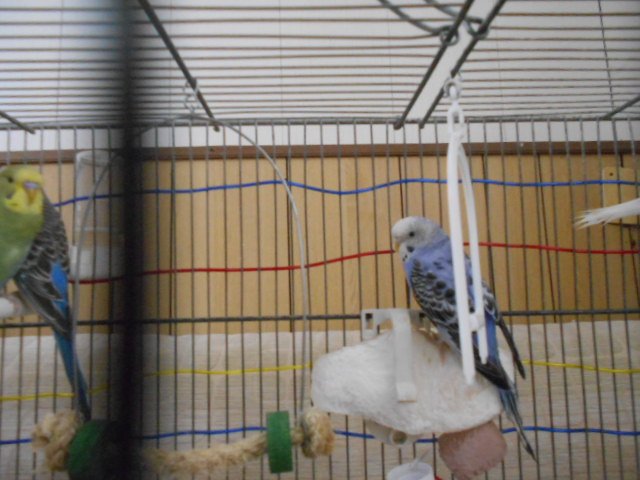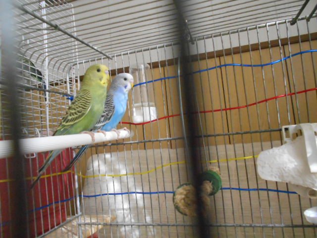 Questa mattina invece sono stati tutti vispi, non assonnati come ieri, e anche il verde è più attivo, comunque gli metto spesso il multivitaminico nell'acqua e il pastoncino... Le loro gabbie sono in salotto. Ho tolto il nido dalla gabbia dei genitori, però vicino alla loro gabbia ho la inseparabile...