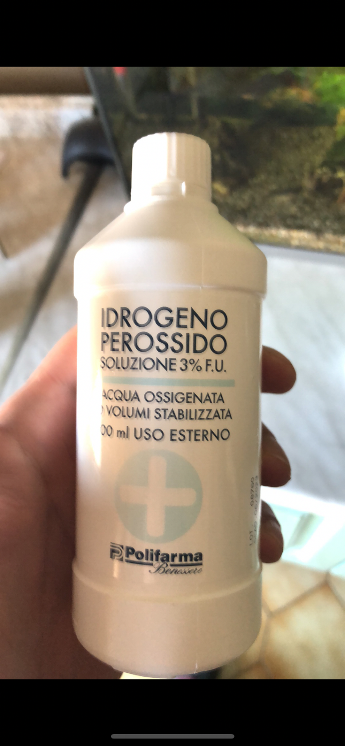 Queste sono le feci di questa mattina...non vorrei fare danni sicuro che si può dare acqua ossigenata ? Io tengo questa qua va bene ? Le feci sono queste ....