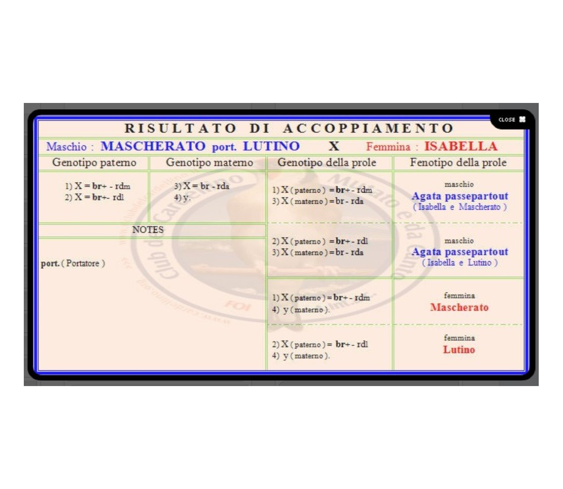 Maschio eumo portatore di lutino x isabella portatrice di wk :