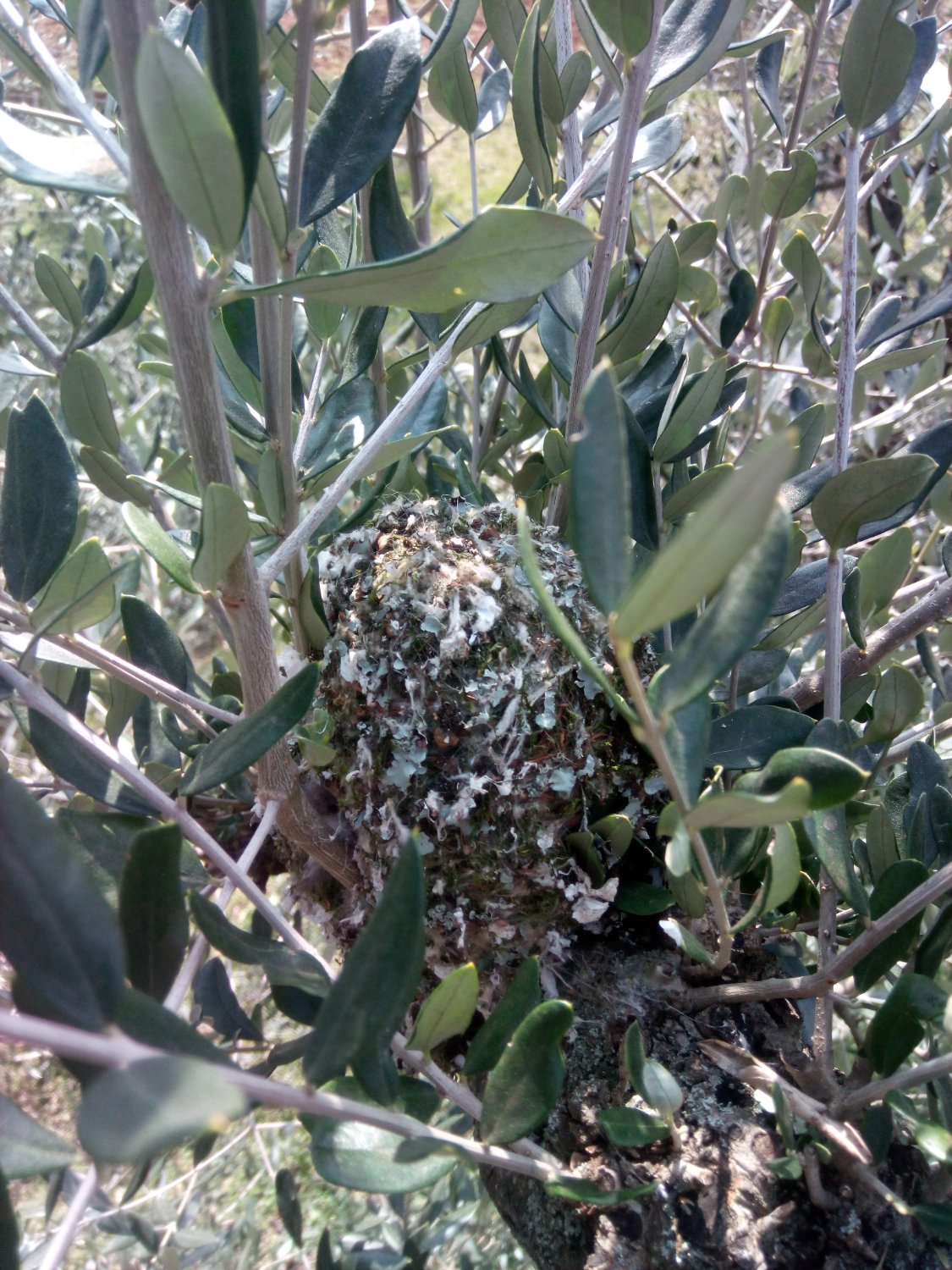 È molto simile a quello dello scricciolo,non mi convince però il.periodo di costruzione perche lo scricciolo va in amore ad aprile,quindi presumo che la costruzione del nido avvenga in quel periodo. Questo nido è agganciato ai getti giovani di un olivo che tutti gli anni poto.