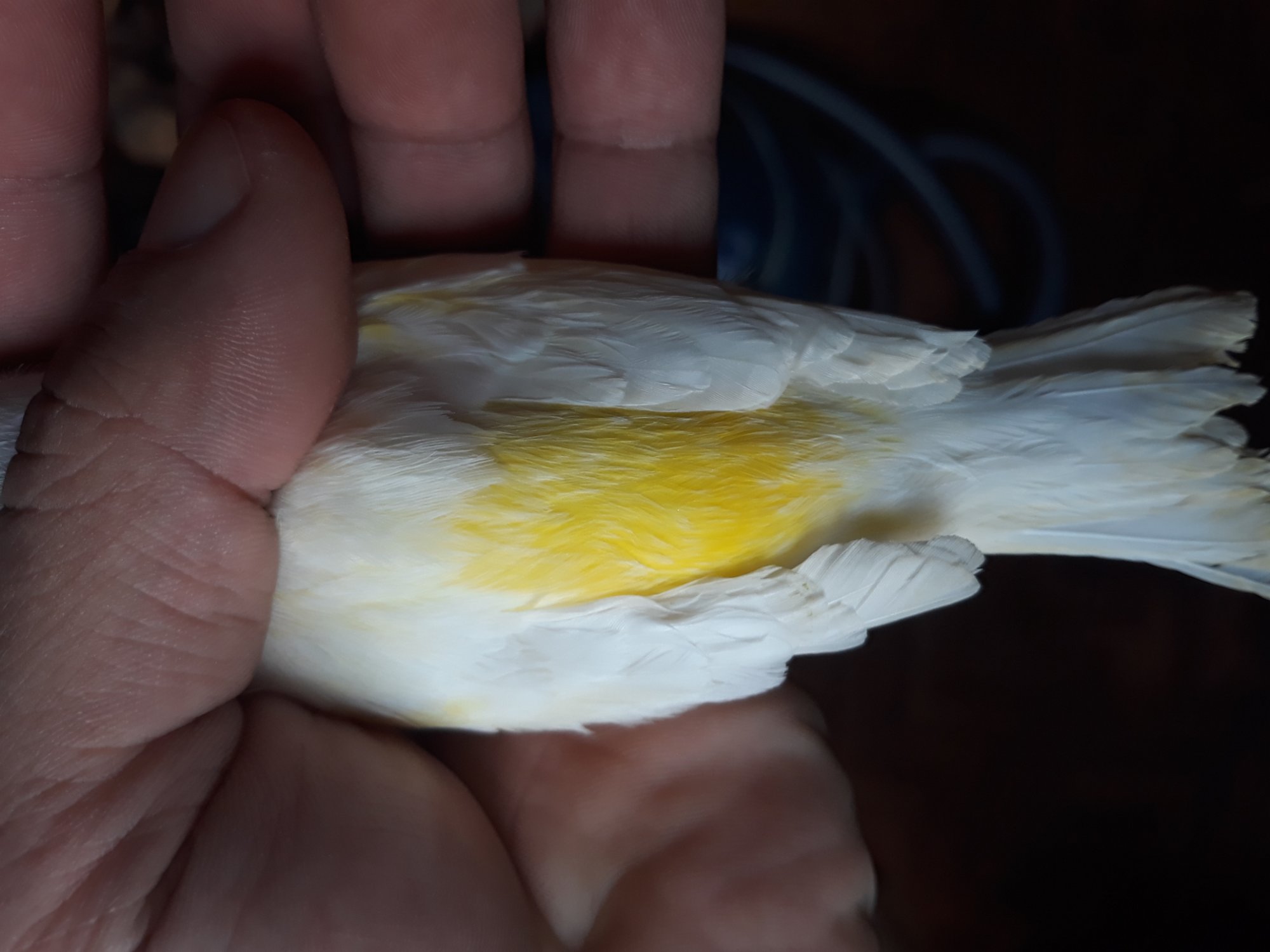 La femmina invece è nata nel mio allevamento i genitori erano 2 giallo mosaico normali l anno scorso hanno fatto 13 pulli tutti occhi neri