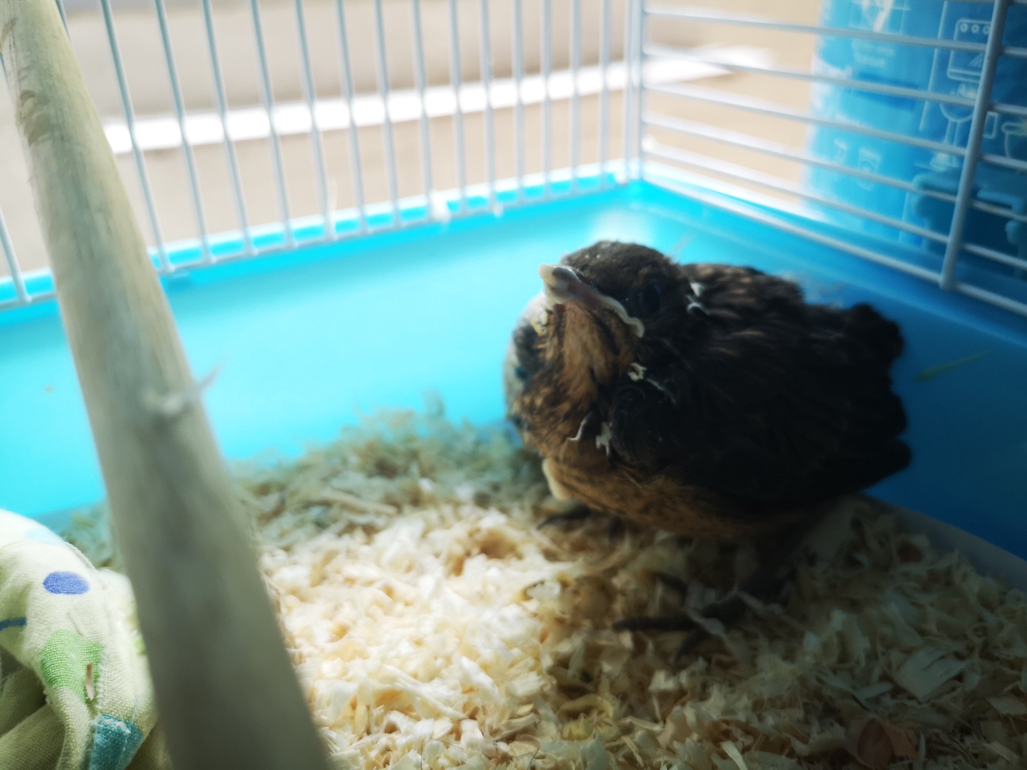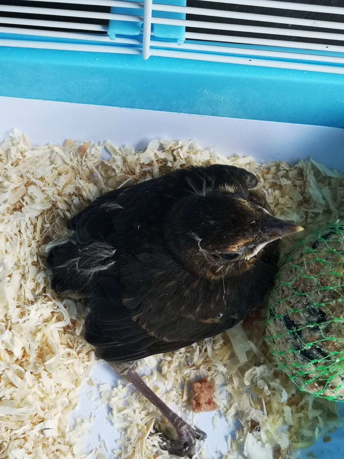 Ora è a casa con me, l'ho messo in balcone (sullo stesso lato della cantina) qui ci sono gli alberi e molti uccelli (sia merli che tordi) in una gabbietta da criceto con la porta in alto aperta sperando che la mamma lo senta.