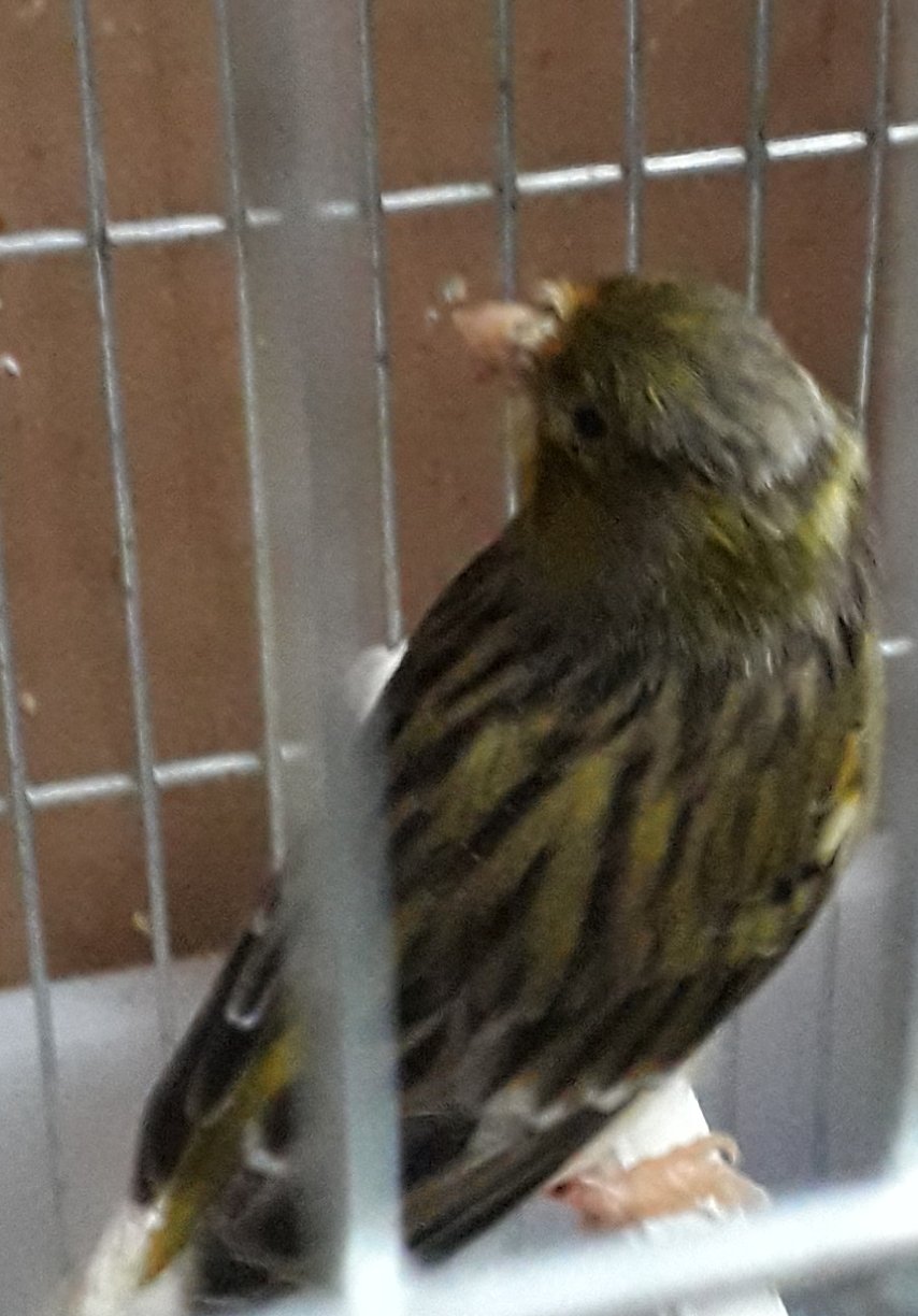 Il canarino è in perfetta salute, ora sta anche imbeccando i suoi pulli, aiutando la femmina.