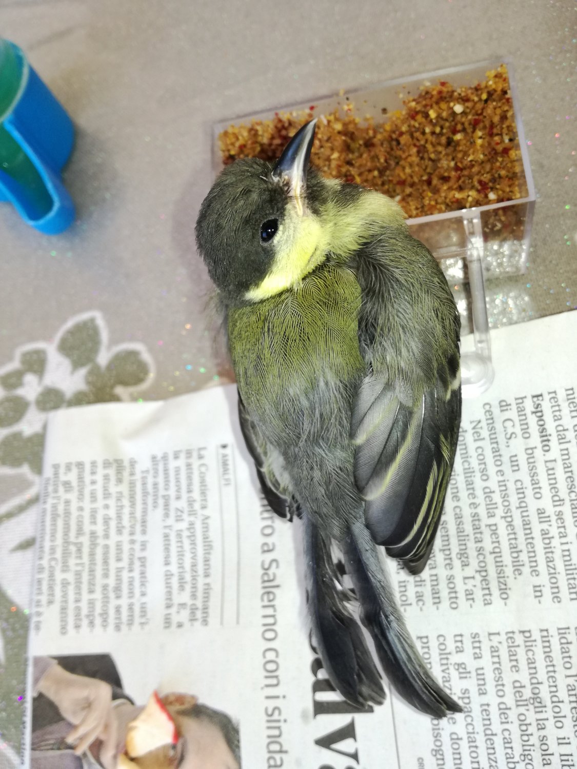 Buonasera, mi sono appena iscritta mi scuso se non sto scrivendo nella sezione corretta ma spero che qualcuno possa aiutarmi. Ho trovato questo uccellino (allego foto), non muove le ali e cinguetta a voce bassa, credo abbia una zampa ferita perché con una zampa si attacca al dito e si regge mentre l'altra non la muove e non la appoggia. Non so di che razza sia, l'ho raccolto perché era sul marciapiede sotto casa, non si muoveva e ci sono molti gatti in giro. Ho contattato la LIPU della mia zona (provincia di Salerno) ma non hanno centri di recupero qui e mi hanno dato indicazioni su come nutrirlo. Ho cercato un veterinario aviario ma il più vicino è a Napoli e non ho modo di andarci prima di lunedì. Per favore potreste darmi delle indizioni per aiutarlo?
