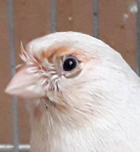 Aggiungo che la bianca ha proprio un po' di colore rosso nel piumaggio sulla testa, l'ha sempre avuto quindi non credo sia una malattia... però gli occhi mi preoccupano tantissimo.
