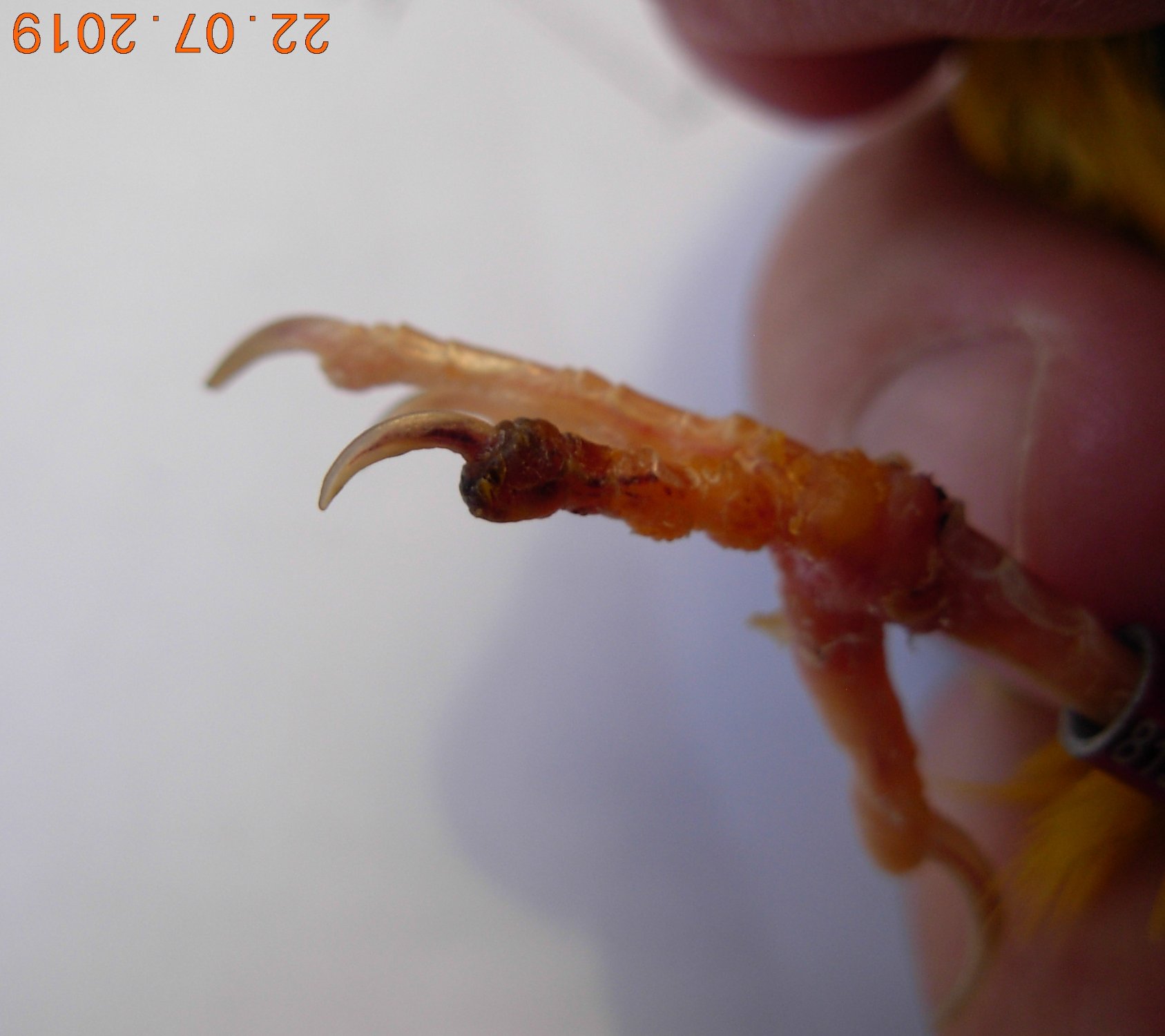 Salve ho un canarino maschio che presenta una sospetta necrosi al dito anteriore esterno della zampa sinistra.