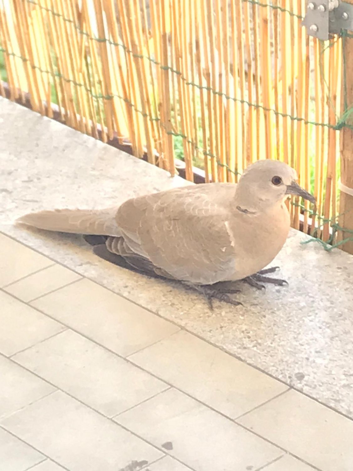 Ieri a bordo strada ho trovato una tortora in una posizione strana, quasi a pancia in su, non riusciva a girarsi cosi l'ho aiutata a rimettersi sulle zampe e mi sono accorto che restava immobile, ovviamente non ce l'ho fatta a lasciarla li' in pericolo, cosi' ho deciso di portarla sul mio balcone; per un'oretta e' rimasta immobile, verso sera vagava lentamente e ha provato a prendere il volo senza successo: sono quasi sicuro che il suo problema sia un'ala rotta.