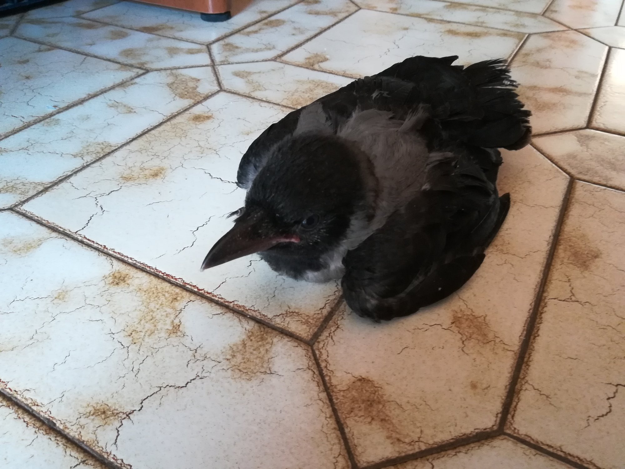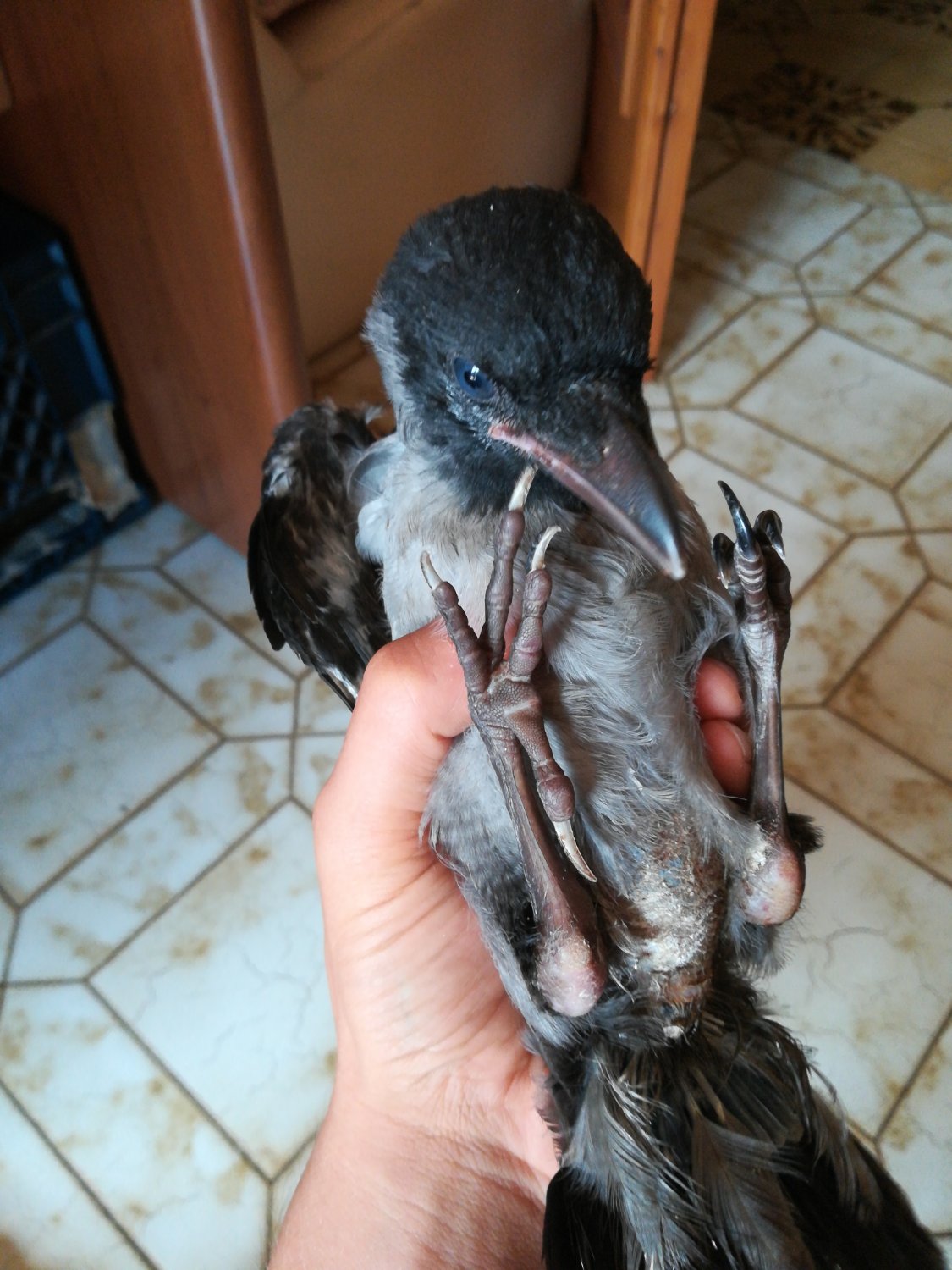 Salve a tutti, qualche giorno fa un amico che lavora come operatore ecologico, ha trovato un piccolo pullo di cornacchia grigia. Sappiamo perfettamente che i piccoli non vanno raccolti perche la madre si trova nelle vicinanze, ma putroppo questo pullo non riusciva a reggersi in piedi, e trovandosi in un marciapiede ha pensato che fosse il caso di prelevarlo.