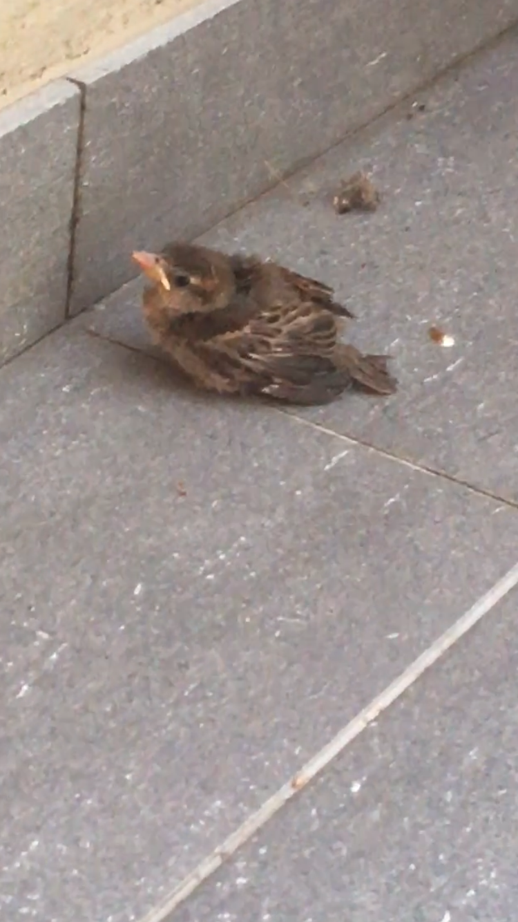L’ho trovato incastrato nello scendente della canala, probabilmente i genitori hanno fatto il nido sopra il tetto di casa mia. So che la cosa migliore sarebbe lasciarlo dove lo si trova, ma abito in campagna e intorno a casa mia ci sono veramente tanti gatti. Non lo tocchiamo quasi mai e a pancia in su l’abbiamo messo un secondo per fare foto alle zampette che ci stanno preoccupando molto. Le prime foto che ho allegato sono del primo giorno, quindi le zampette così le ha da quando lo abbiamo trovato. Da mangiare gli abbiamo dato pochissimi pezzetti di ciliegia e uva e dell’omogenizzato di manzo (su vari siti/guide/forum ho letto di fare così). Comunque ora lo lascio sul terrazzo dalle 6 di mattina fino a sera tardi, dove la madre lo riesce a nutrire tutto il giorno. Di notte lo mettiamo in casa perchè dove abito c’è molta umiditá e abbiamo paura che da solo possa patire il freddo. Abbiamo improvvisato un nido in uno scatolone e lui sembra starci bene. È vivace e sta con i suoi genitori tutto il giorno. Lo abbiamo trovato giovedì sera comunque e il nostro obiettivo è lasciarlo andare con sua mamma non appena riuscirá a volare per non stare a terra, che avrebbe vita molto breve.