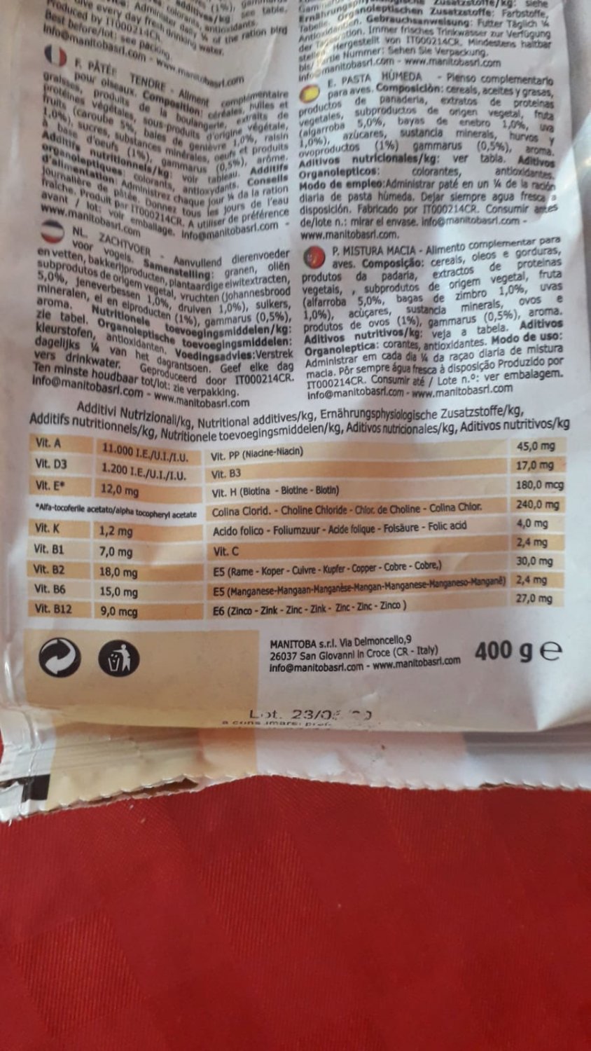 Il prodotto in foto è un pastoncino morbido per canarini e uccelli granivori.