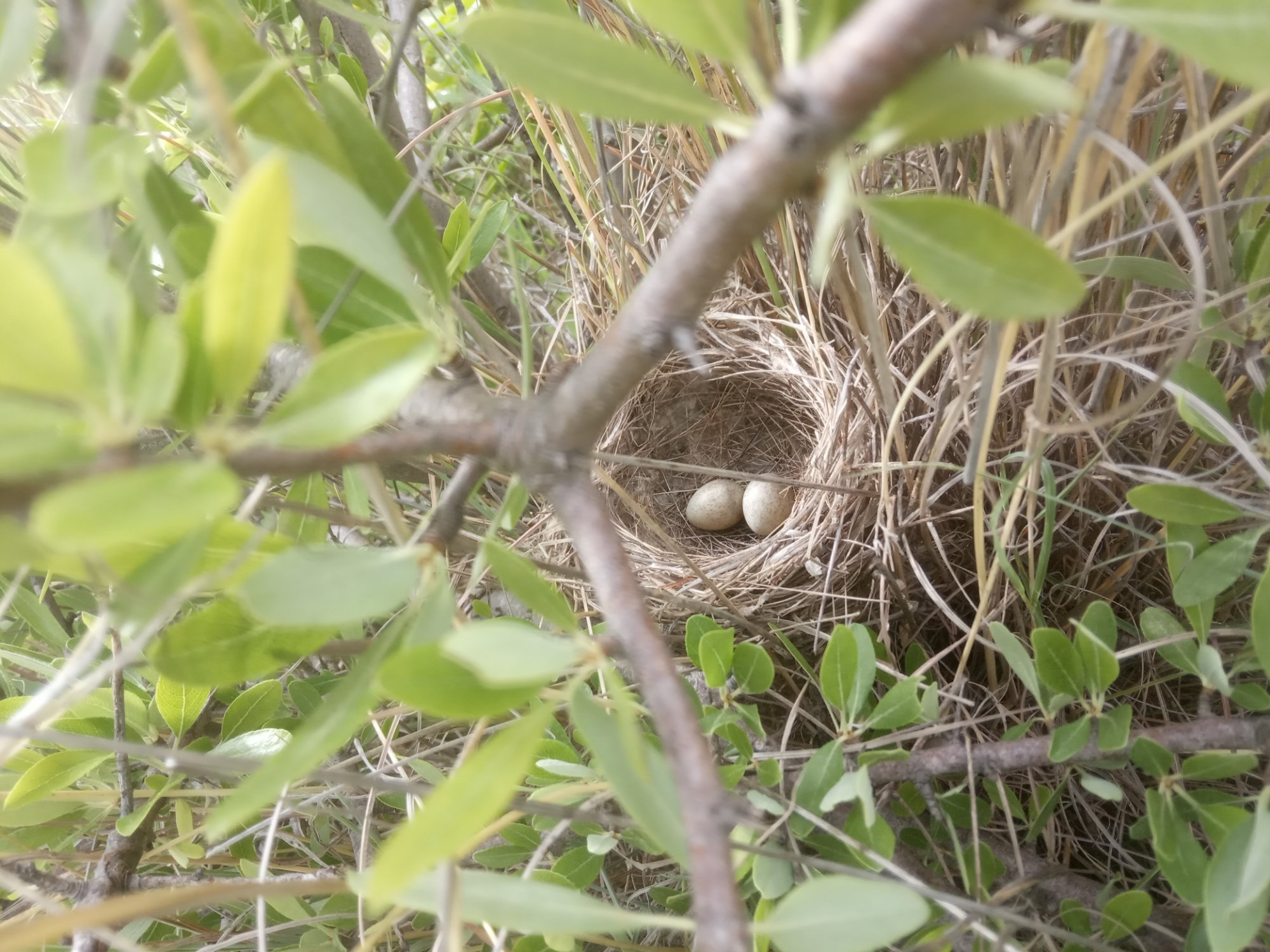 Nido piccolissimo, su un arbusto spinoso a non più di 10 cm da terra, in aperta campagna.