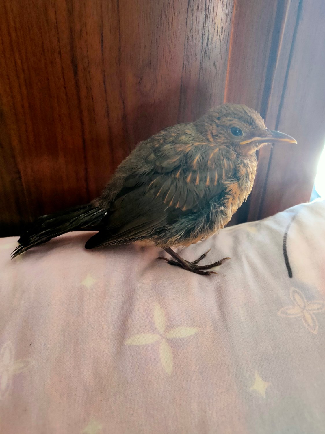 Salve a tutti, ho da un po' di tempo un bel merlo che ho salvato dal giardino di mia cognata che avendo il cane spesso gioca con gli uccellini che cadono dai nidi, uccidendoli involontariamente. Per evitare ciò sto allevando questo Merlotto per poi liberarlo. mangia da solo ora è curioso, ma ancora piccino sta finendo di mettere le piume alla coda ecc. Vi scrivo perché da un po' di tempo starnutisce inizialmente pensavo fosse perché beveva dalla ciotolina metteva tutto il becco nell' acqua e gli finiva dentro alle narici, però ora stava sul lettino cn me e starnutiva, nn so se è anche lo sbalzo di temperatura, che abitando all ottavo piano negli ultimi giorni dal balcone entra in casa un bel po' di vento. Inoltre, oggi stesso ha avuto tipo come un blocco alle zampe l ho visto sofferente come se nn riuscisse a stare in piedi e dopo pochi minuti si è ripreso, ho pensato all alimentazione, che forse troppo carica di frutta, e l ho ridotta drasticamente mangia il pellet e di tanto intanto degli insetti il come formichine o qualche insetto volatile. Sono preoccupata perché nn vorrei trascurare la cosa. Le piume stanno apposto solo la coda è un po' "spettinata" ma perché devo cambiare la gabbia in cui va a dormire molto stretta e va a strisciare. Nn so ragazzi consigli? Ho foto del merlo e il video dove starnutisce. (Che non starnutisce proprio sempre) La foto dove sta in piedi è dopo essersi sentito male , vi prego aiutatemi nn vorrei fosse qualcosa di grave mi ci sono affezionata molto