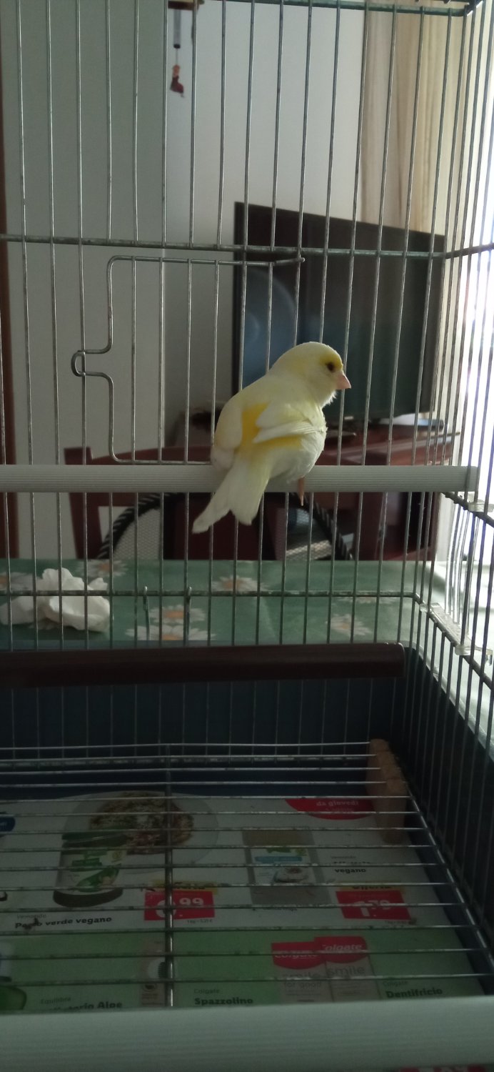 Altra informazione, la mia canarina non è riuscita ad andare totalmente in muta e noto una macchia rossa all'interno di entrambe le ali nella parte superiore.