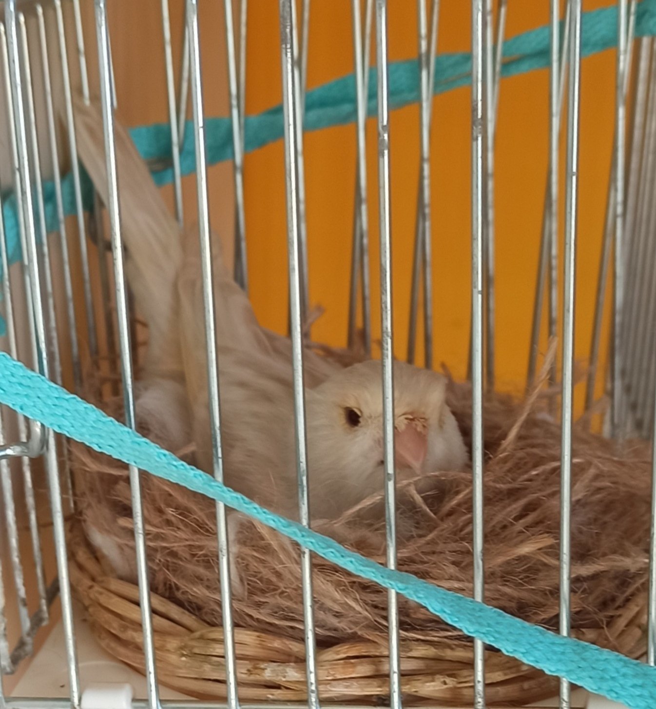 Si, credo tu abbia ragione, la nonna credo sia una satiné, in origine aveva la mascherina rossa ora sbiadita e ha gli occhi con un riflesso rosso scuro. In questa foto sta covando, mi sono limitato ad una sola cova quest'anno perché la vedevo molto affaticata, i suoi 4 piccoli hanno ormai circa 50 giorni (la foto è di qualche settimana fa) e tra un paio li darò via. Quello con la mascherina arancio è il figlio nato lo scorso anno nonché padre di questi ultimi piccoli nati 8 giorni fa, portatore. In genetica faccio ancora abbastanza schifo, migliorerò
