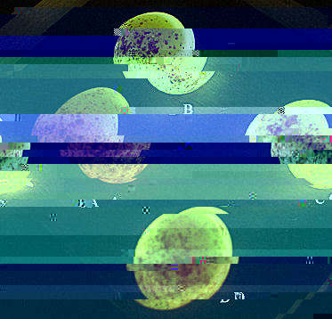 le uova B e C avevano il turlo galleggiante nell'acqua... Mi spiego meglio: ho notato che ruotando l'uovo sul fascio di luce l'alone più scuro (il tuorlo) si spostava come se stesse galleggiando nell'acqua... come si vede sono verdognole, le ho aperte... erano buone per una frittatina in miniatura. ;-).