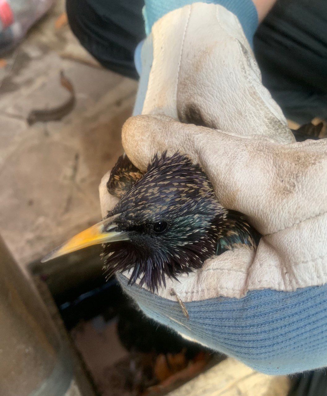 quello che hai in mano, è uno stornino (Sturnus vulgaris) Sono uccelli abbastanza gregari, soprattutto in autunno / inverno, quando formano storni grandissimi che solcano il cielo, per trovare rifugio e dormire tutti insieme durante la notte.