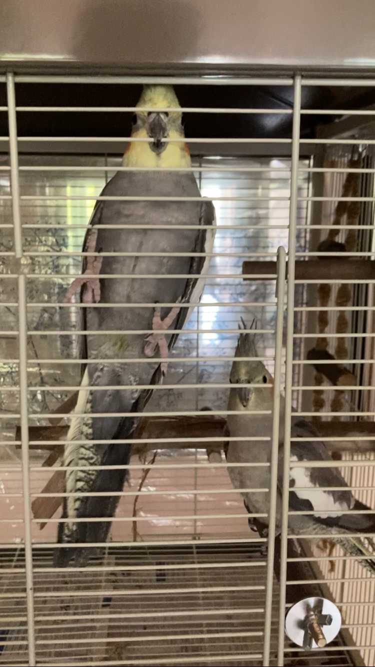 Dovrebbero essere degli ancestrali da quello che ho dedotto. Il maschio ha una mascherina gialla non del tutto uniforme e ha ancora una penna remigante della coda gialla con le barrature. Fa dei fischi un po’ più articolati della femmina ma per ora non dei vocalizzi particolari.La mia idea è che possano comunque avere meno di un anno (credo che abbiano fatto una prima muta ma non completa). Allego le loro foto. Chiedo a qualcuno di più esperto di me cosa ne pensa di una loro ipotetica età. Non sono allevati a mano, ma vorrei provare ad addomesticarli, ovviamente più son giovani e più penso che sia meno difficoltoso farlo. Ringrazio in anticipo.