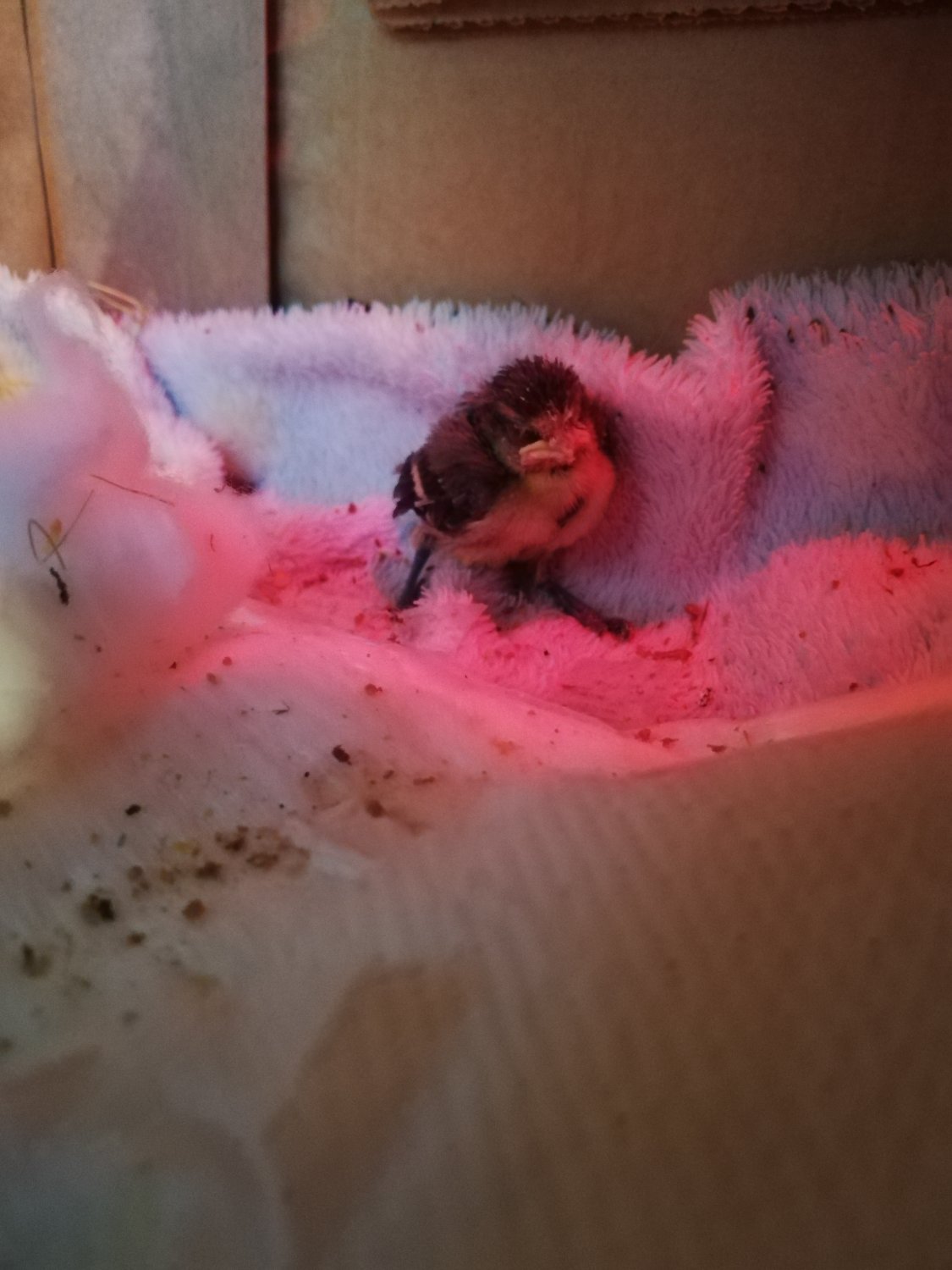 Sto lasciando ancora la lampada termica perché non voglio provocare uno sbalzo di temperatura e perchè ancora non ha piume nella zona sotto le ali e un pochino sotto la pancia.. ma crescono di giorno in giorno in modo impressionante. Comunque la lampada l'ho distanziata tenendo conto del fatto che ha molte più piume di prima. Per precisare: ovviamente lo tengo ancora dentro casa.