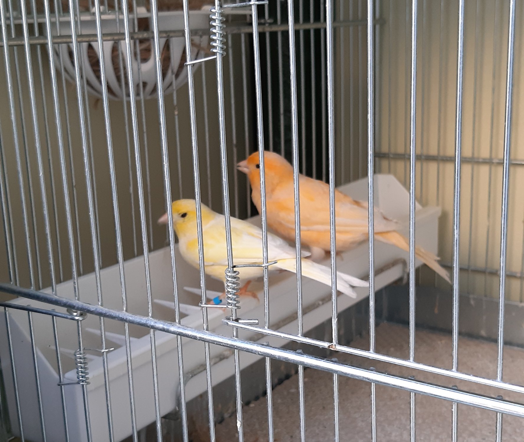 Ciao a tutti! Circa un anno e mezzo fa ho comprato una presunta canarina gialla che sola soletta non ha mai fatto uova e nemmeno accennato l'idea di voler fare nido... che strano...ma non ha mai cantato se non qualche piccolo gorgheggio e cinguettio molto forte...a settembre 2020 ho comprato allora un presunto lui, arancio chiaro, dalla stazza imponente. Era molto docile ma giallo lo ha da subito attaccato... ho voluto lasciarli comunque assieme per abituarli. Anche arancio non ha mai cantato nemmeno con l'arrivo della primavera ma lo vedevo inquieto, strappava carta.. ho deciso di mettere un nido e oggi ho già 4 uova covate da quello che doveva essere il mio canarino maschio. Ho visto che si accoppiavano quindi molto probabilmente giallo é maschio e arancio é femmina.Metto alcune foto, qualcuno gentilmente mi saprebbe dire che canarini sono? E che pulli potrebbero nascere? Grazie!
