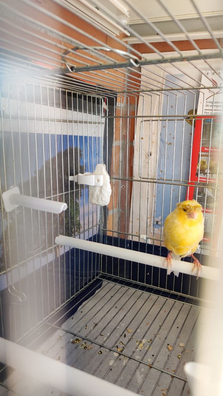 Del resto lui è tranquillo, mangia beve canticchia ma il bagnetto è un problema con queste zampe che gli bruciano e ogni tanto le alza.