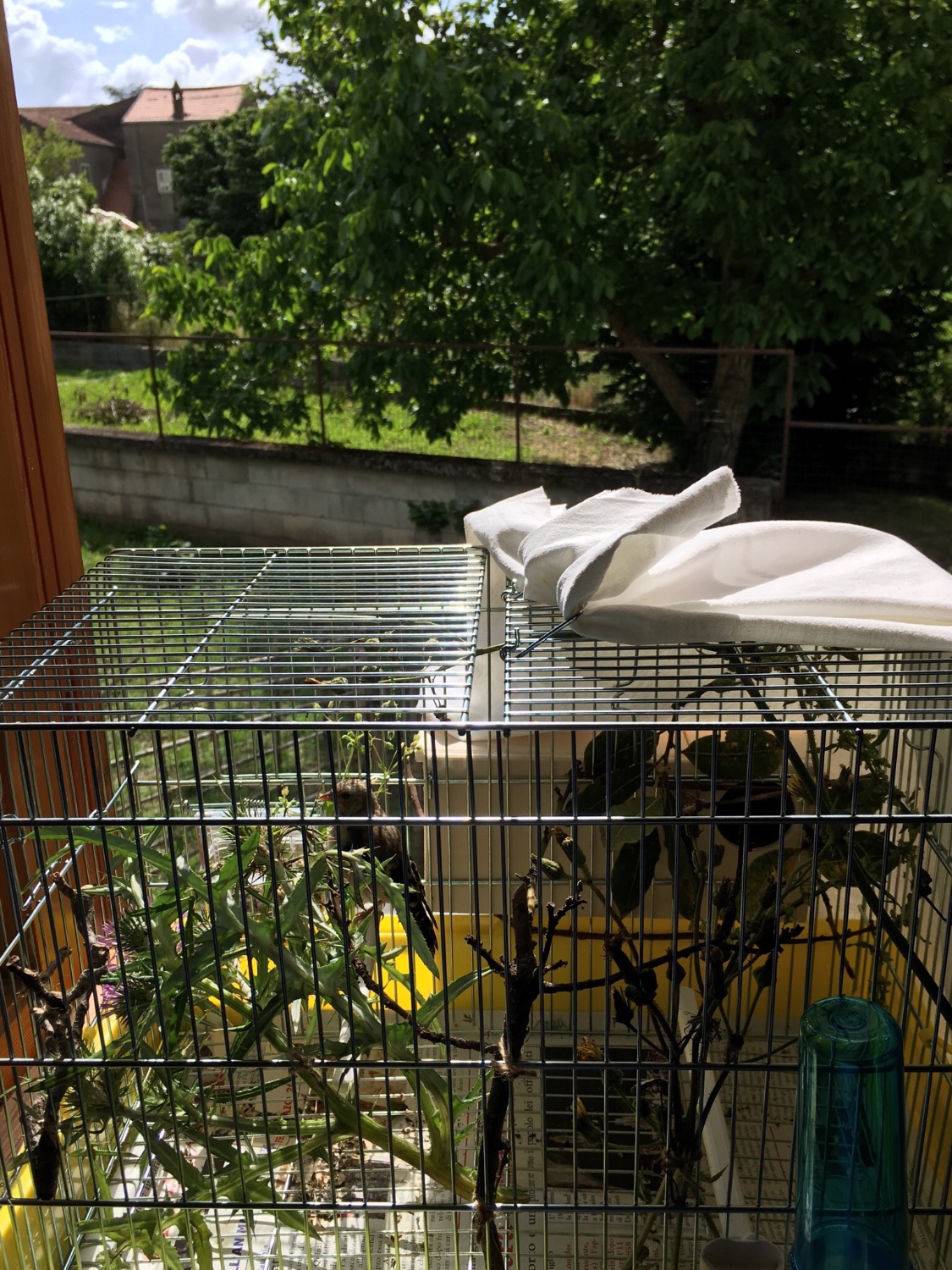 Intanto stamattina ho portato Lino con la gabbia nell’angolo del giardino dove posizionerei l’eventuale voliera, tutto bene, guardava con piacere i rami, le foglie ma è passato il cane in lontananza e (come diceva Giampiero più su) gli è quasi preso un infarto, ha cominciato a battere con le ali contro le pareti della gabbia come per voler scappare, ci siamo subito spostati, ho aspettato che si calmasse e l’ho poggiato sul terreno dove cresce il centocchio, e l’ha mangiato con gusto attraverso le sbarre.