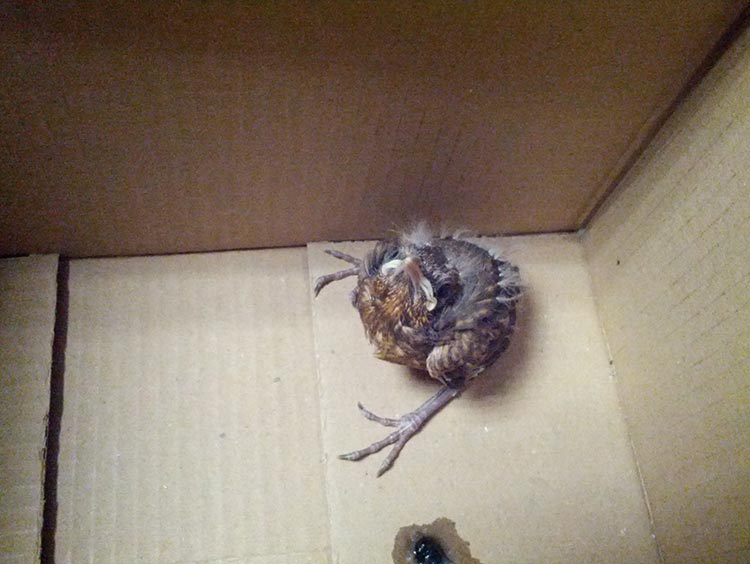 Ho provato a metterlo in un posto più sicuro vicinissimo ma tornato dopo 1 ora era nella stessa posizione e non c'era traccia di altri volatili, stava calando la sera, verso le 19.00 ho riprovato mettendolo sempre a una decina di metri dal ritrovamento ma in 1 ora di attesa nessuno si è avvicinato, io lo guardavo da una 30ina di metri semi nascosto.