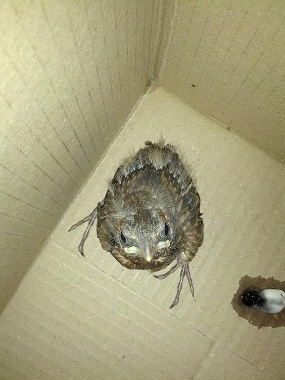 Ho trovato a terra un uccellino, zona parcheggio/strada, a rischio auto e gatti verso le 17.00.