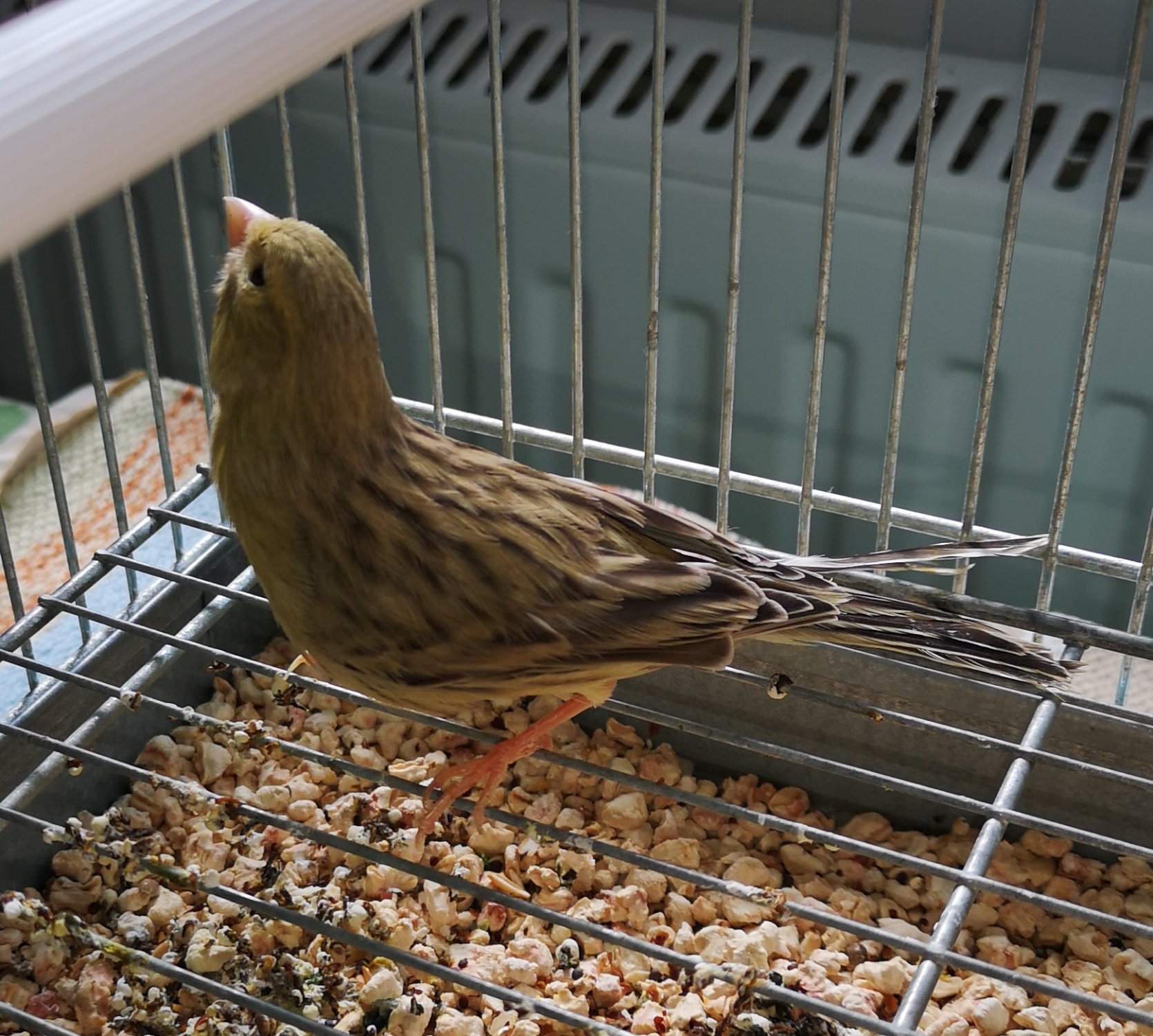 Se sarebbe brinato...fine coda e attccatura delle piume sulle zampe tutto bianco...il tuo canarino a il colore avorio