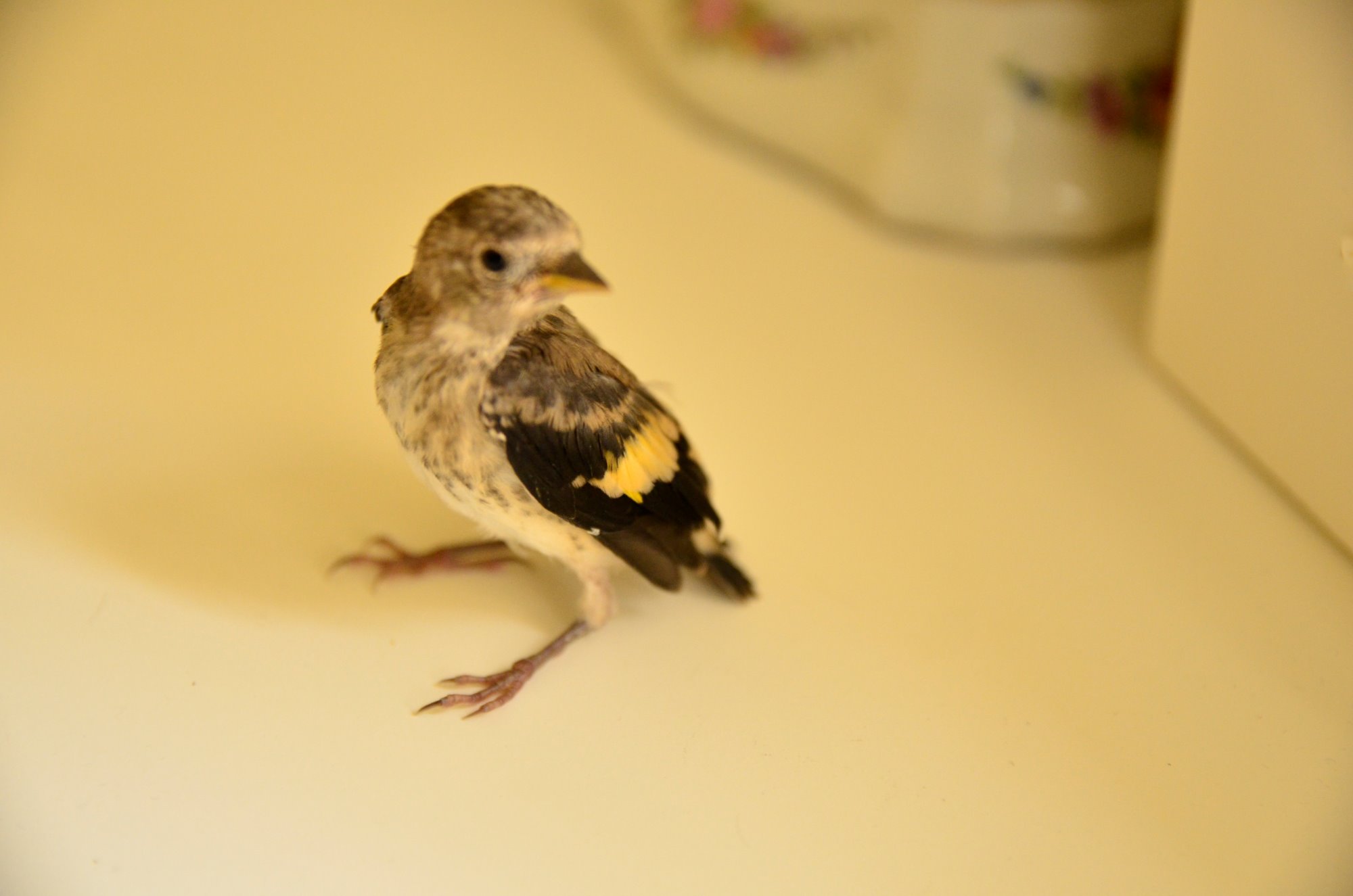 Oggi un signore in un paesello dove sono per il week end mi ha mostrato un piccolo cardellino caduto dal nido, il nido era già stato individuato e il signore aveva provato a rimettere il piccolino al suo posto già diverse volte ma credo sia il periodo che il nido lo lasciano di loro volontà e suoi fratellini avevano già fatto una brutta fine in bocca ad un gatto quindi questa persona si è sentita di raccogliere il terzo superstite...anche perché pare si stia preparando un temporale.