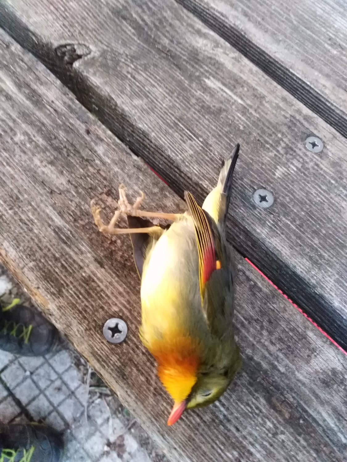 Ho trovato questo uccellino morto nel mio terreno sopra Lerici. Ho fatto qualche ricerca ma non ho trovato nulla. I colori nella foto sono meno vividi che nella realtà. In particolare il becco è rosso carminio. Grazie