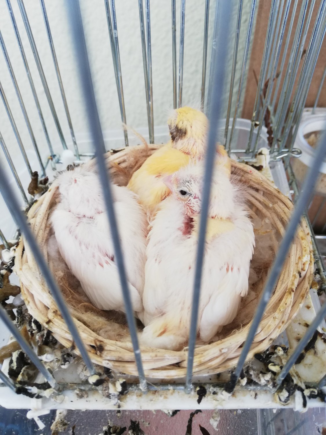 Il padre è un arancione brinato forse per mancanza di colore rosso, la madre è un rosso intenso, i pulli sono due bianchi è uno arancione come il padre.