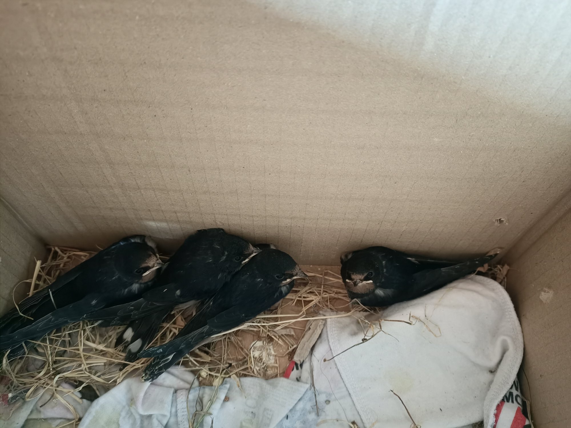 Per il resto ho fatto una mensola dove ci sono le altre rondini e li ho messi con la scatola con una rete che possono vedere fuori,gli do da mangiare ogni 2 ore e almeno così vedono e si ambientano e tra qualche giorno gli lascerò la scatola aperta ...