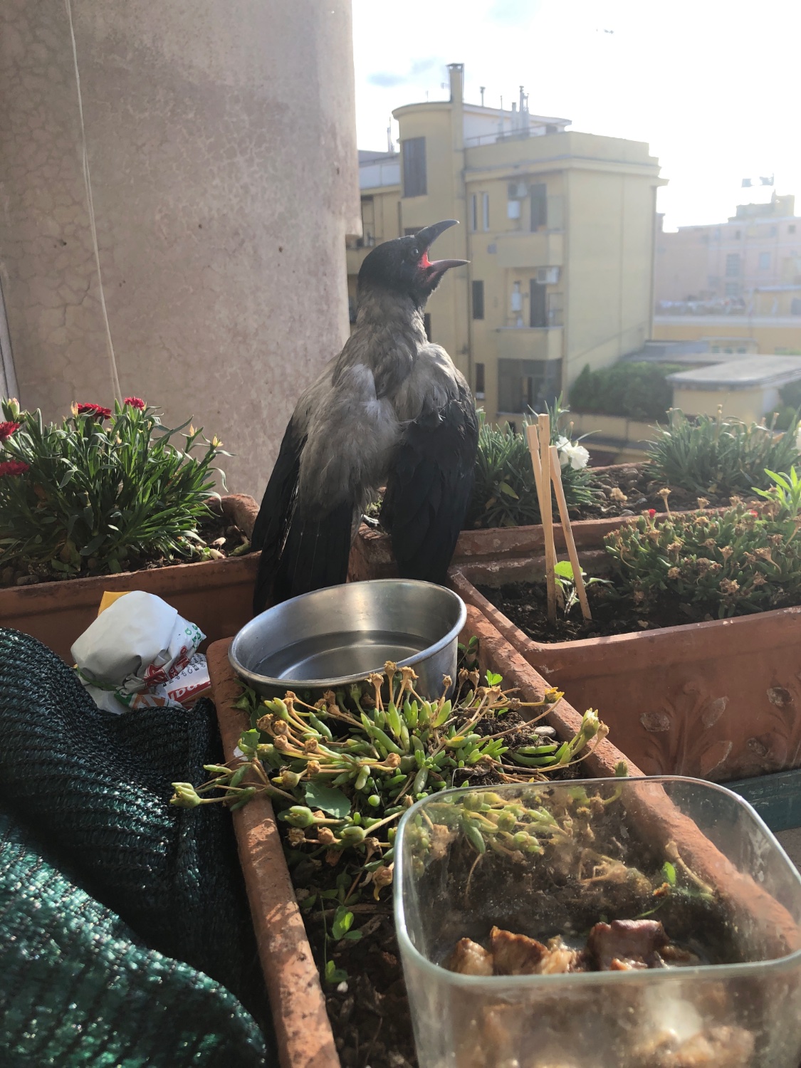Volevo un consiglio.. domenica ci è caduta sul balcone di casa (Roma, ottavo piano) una cornacchia chiaramente non in grado di volare. Chiedeva insistentemente di mangiare quindi le abbiamo dato della carne che avevamo, l’abbiamo portata alla lipu dove ci hanno detto di lasciarla libera in un parco poiché a distanza di pochi giorni avrebbe volato autonomamente; ora, noi non ce la siamo sentita per la paura che qualcosa se la mangiasse visto che ancora non ne voleva sapere di volare...