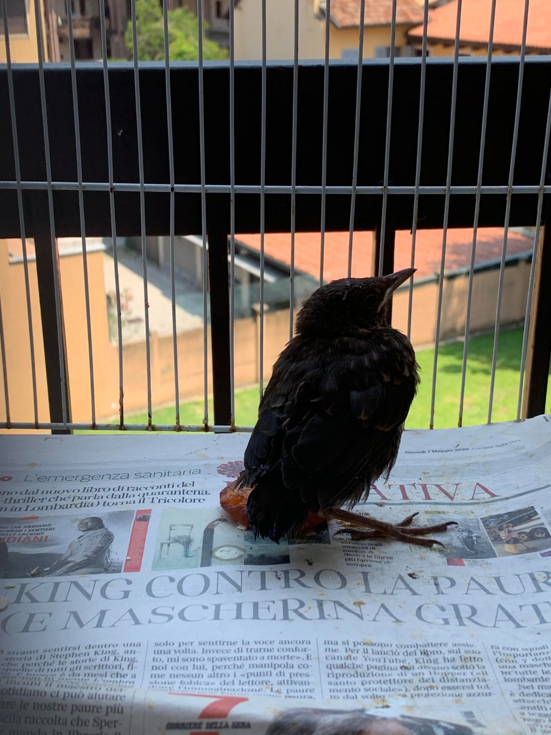 L'ho liberato. Dal 2° piano è atterrato nel giardino e stava in un angolo senza volare. Il papà gli portava i vermetti lui mangiava ma stava fermo.