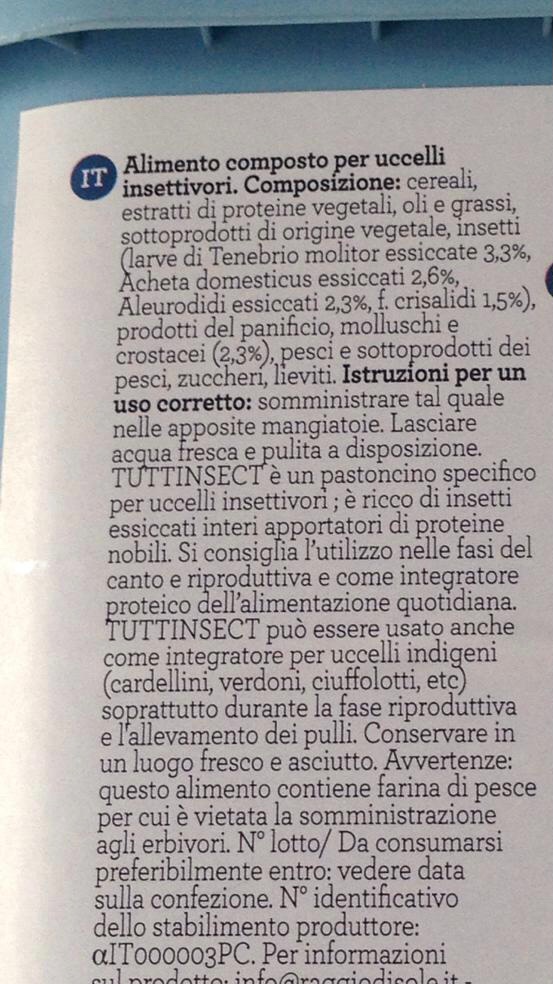 Come vedi la % di insetti e' piuttosto bassa nel prodotto. Fai come consigliato da Giampiero e ordinali online. Se per qualche giorno continui ad alimentare come hai fatto gia' per 6 mesi non succede nulla.