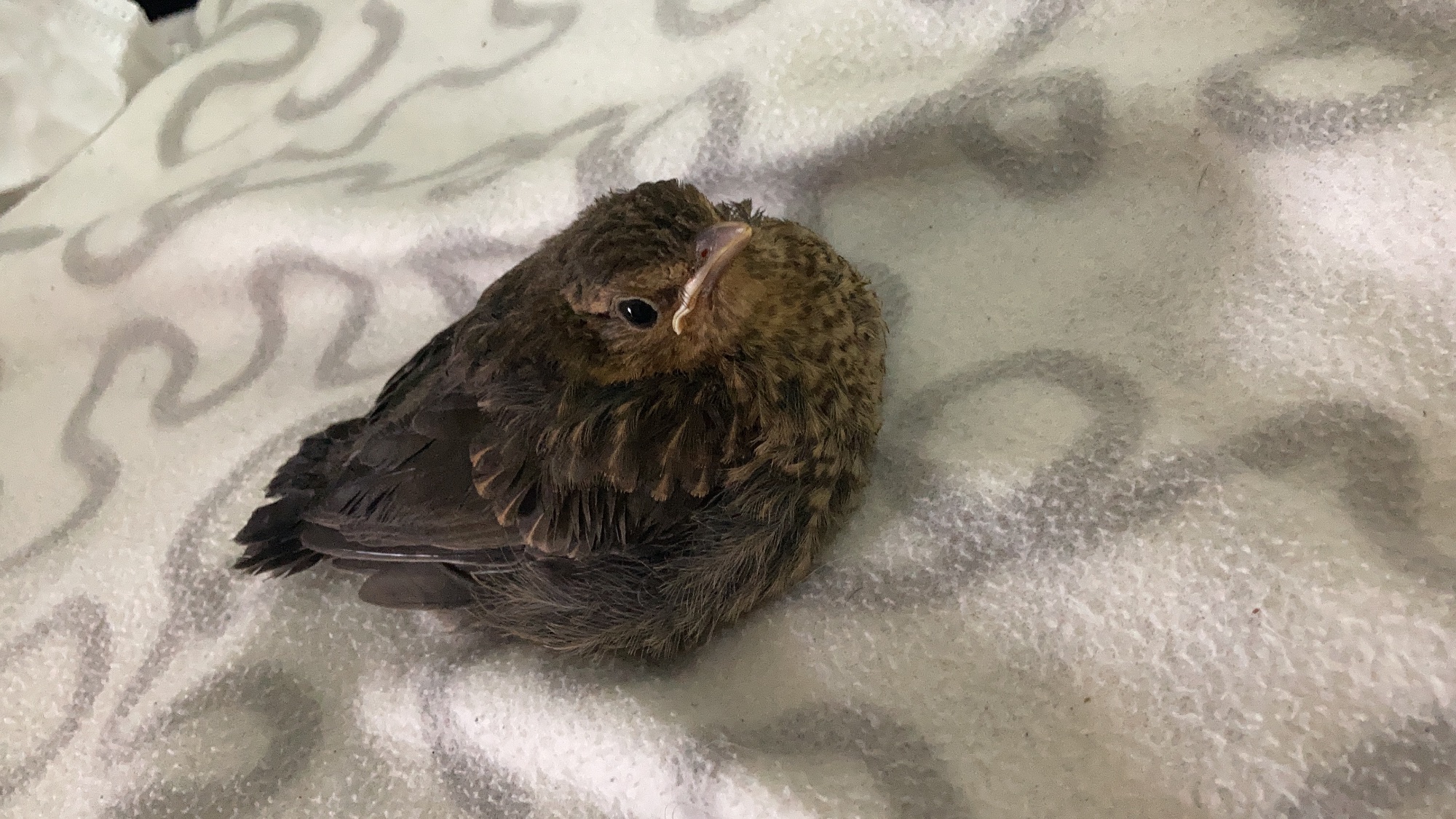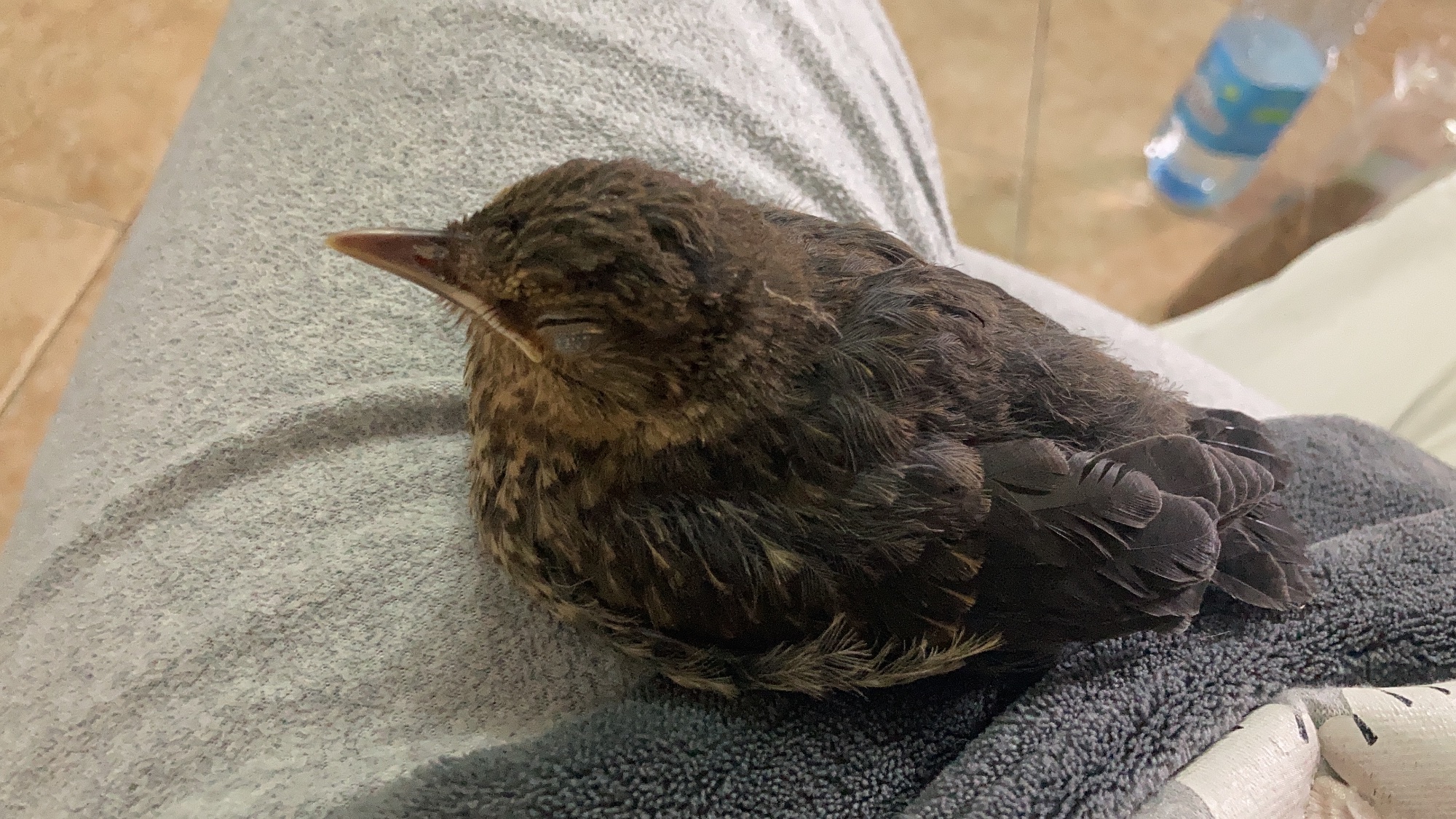 ho salvato da un gatto e dalle macchine un piccolo merlo di 15 giorni.