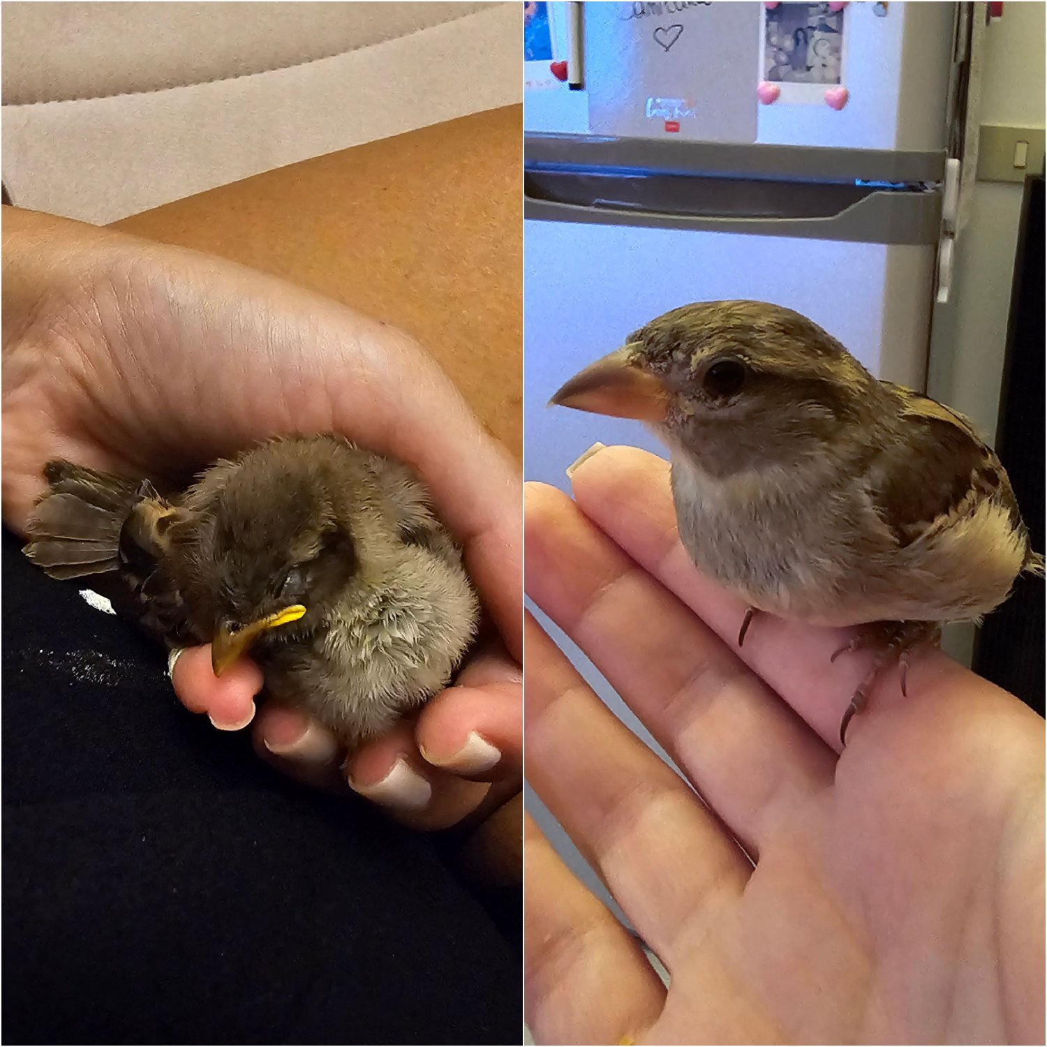Salve, chiedo aiuto e consigli per un salvataggio fatto ad agosto, due mesi fa, di un passerotto trovato in un parcheggio con le zampe bloccate da ragnatele e sporcizia varia. L'ho trovato perché erano le 22:00 e mi ha attirato il suo richiamo, strano a quell'ora di sera. Inizialmente lo imbeccavo ogni ora con carne resa poltiglia, pastoncino, uovo. Da un mesetto rifiuta l'imbecco ed è stato svezzato, si nutre di misto semi canarini, pastoncino, camole della farina, mela, e mix con frutta secca.