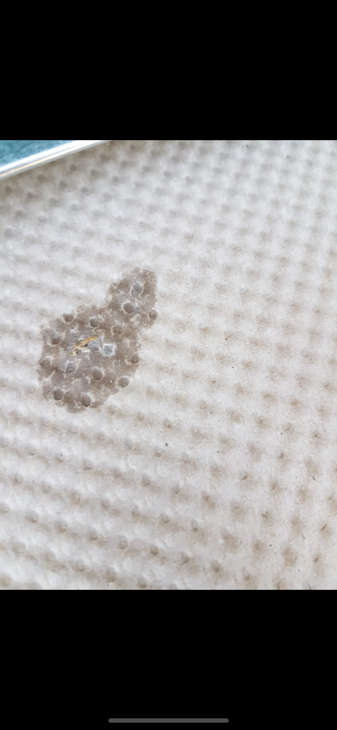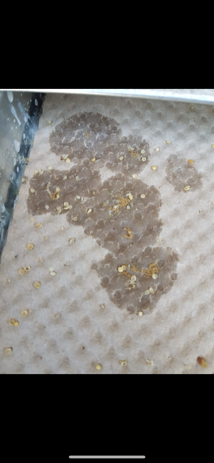 Queste sono le feci di questa mattina...non vorrei fare danni sicuro che si può dare acqua ossigenata ? Io tengo questa qua va bene ? Le feci sono queste ....