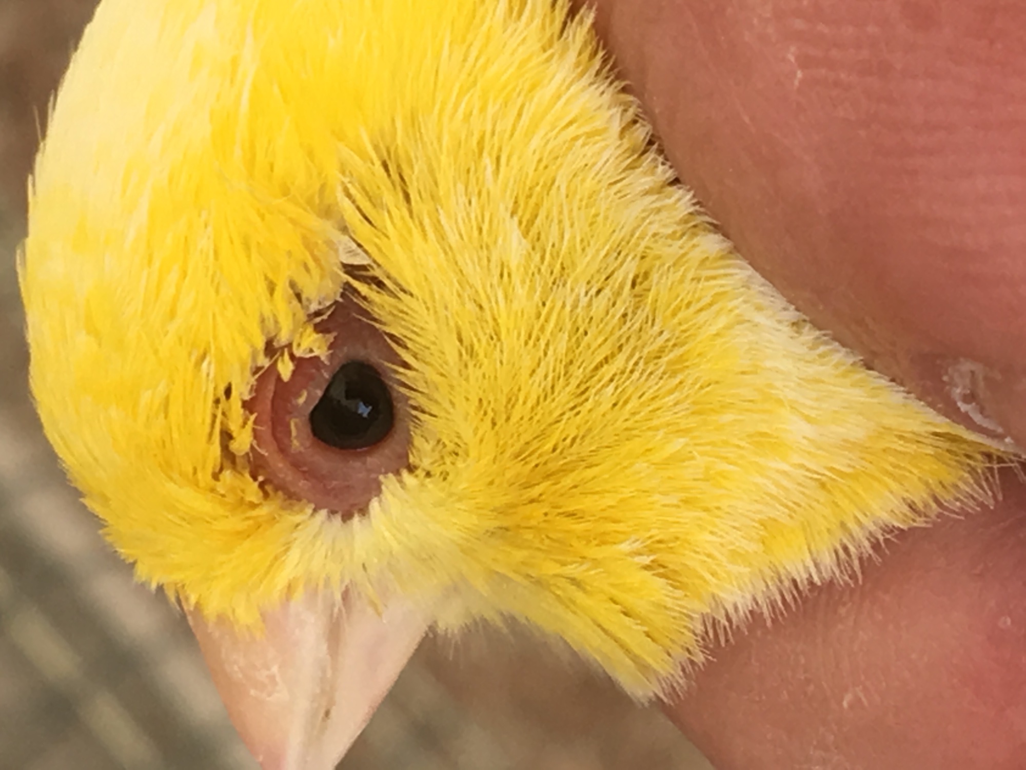 Non so dirti,vedi tu...l occhio lacrima ed é bagnato e il soggetto debilitato se ha la trico che io sappia..se asciutto e il canarino in forma, é deplumazione da stress cova,ed é pure femmina come pensavo.poi vedi tu il da farsi,l hai tu sotto occhio la canarina.