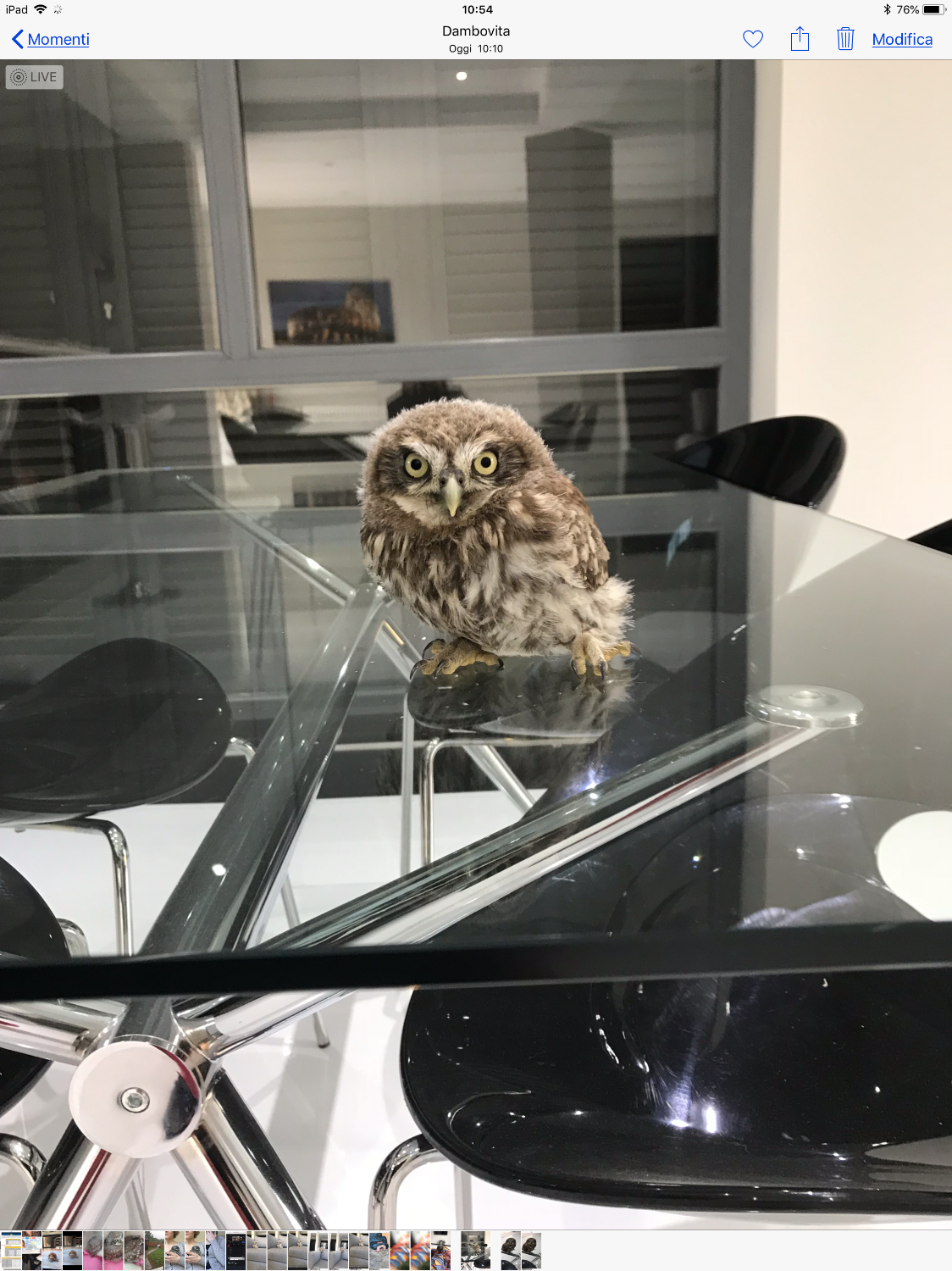 Grazie Giampiero, si sono in Romania in quanto rumena ma vivo in Italia dal 2003. Il pulcino pesa 146g oggi. Sono diventata “amica” con la mamma, ieri si è fatta vedere al mio richiamo, letteralmente. Siccome non l’ho vista per tutto il giorno cominciavo a preoccuparmi così ho fatto il mio verso, che faccio solo quello quando mi avvicino al riparo del cucciolo, giusto per non spaventarlo, così sa che sono io che mi avvicino e non un predatore. Quindi facendo il verso la mamma civetta si è letteralmente affacciata dal alto, era sul mio tetto, come per dire eccomi oppure cosa c’è ? Da 3 giorni prima di chiudere tutto lascio a mamma civetta un lombrico come segno di amicizia. Scavo nel giardino alla ricerca di squisitezze. È stato pazzesco! Ma come facio a lasciarlo tutto il giorno senza cibo?! Non riesco sapendo che è affatto. Poi la mattina devo pulire il riparo perché è pieno di escrementi e vengono le formiche dentro. Metto la carta pulita. Non socializziamo, giusto solo ai pasti e quando accade io non parlo niente a lei piace il silenzio quindi faccio così .