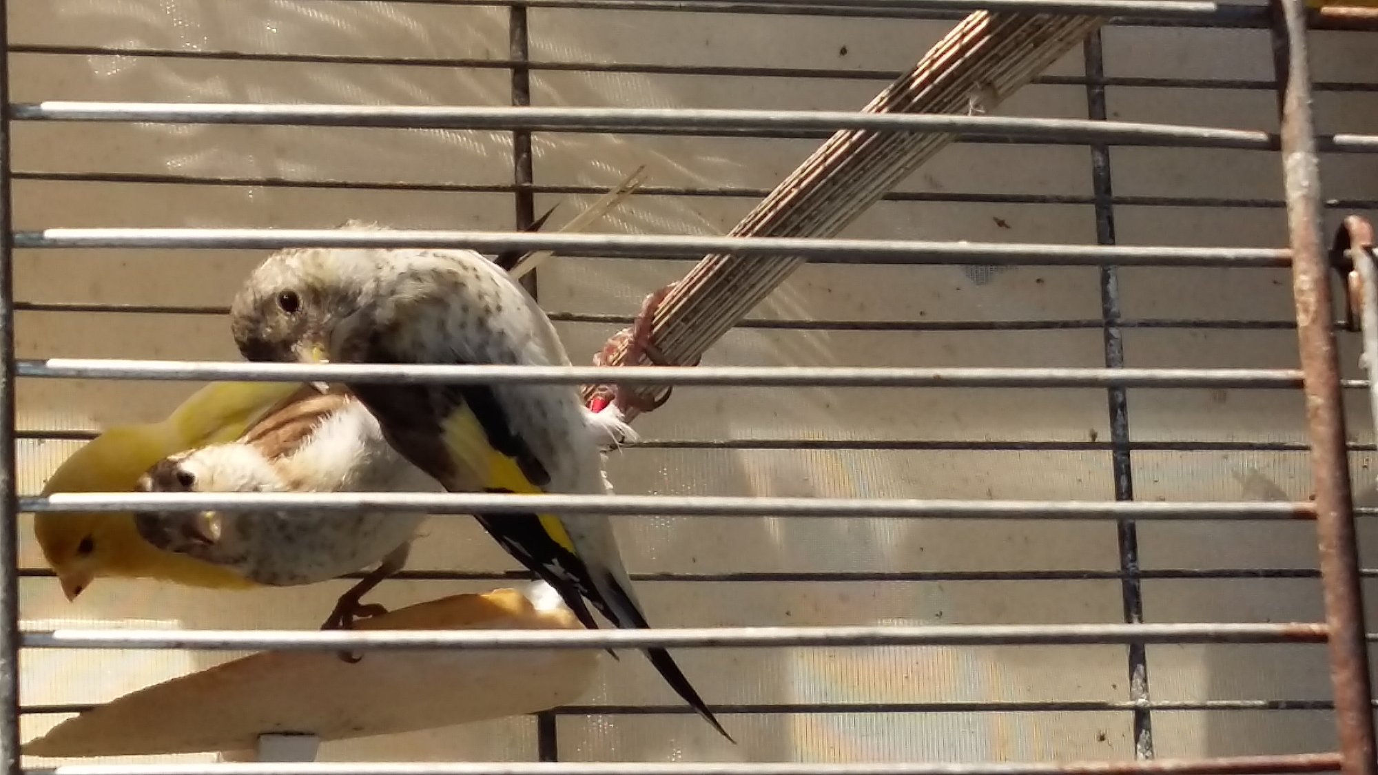 Questi invece gli ultimi 2 un po' più "bruttini",un eumo e un ancestrale,ancestrale (si vede anche in foto) ha il dito riverso avanti fasciato,l eumo é stato spennato dalla femmina x rifarsi il nido