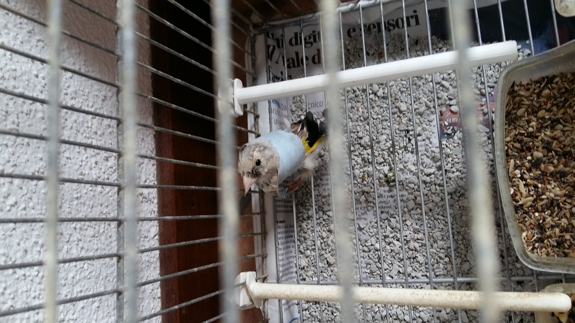L altro Ieri ho tolto un paio di remigranti (le ultime due alla fine dell ala) a un cardellino che le aveva spezzate ,operazione che ho sempre fatto più volte senza conseguenze,ma ieri ho sentito un tac togliendo la seconda remigrante che era decisamente dura.. appena rimesso in gabbia ho subito notato che non vola e tiene l ala bassa,ieri sono corso in farmacia non avendo nulla di adatto in casa, x chiedere una benda e spiegandone l uso che mi serviva ,mi ha consigliato un cerotto con silicone che attacca molto meno dell adesivo...x neonati insomma..ora ho proceduto alla fasciatura prima con la garza ma seppure l avevo fissata alla coda come consigliato dalla farmacista che aveva avuto esperienze in veterinaria(però solo su calopsiti) e mi ha detto come procedere, con un cerotto ma se l é riuscita a sfilare strappando pure la coda, poi ho provato con il cerotto e sembra stare... le penne attaccano ma con cautela si stacca bene (ho fatto la prova prima)..ora la mia domanda é avrò la possibilità che volerà ancora...é già capitato a qualcuno? almeno da gallare le femmine visto che mi sa ,ma sarà maschio..quanto tempo dovrà stare la fasciatura(lei mi ha detto almeno 15 gg)?premetto che penso di aver fatto un buon lavoro tenendo entrambe le ali ben strette e in posizione naturale come consigliatomi, il soggetto mangia e beve ed attivo...remigranti non ne strapperò mai più dopo questa ! Oltretutto é un favato con unghie e sottopiuma bianchi a cui tengo x la riproduzione ..