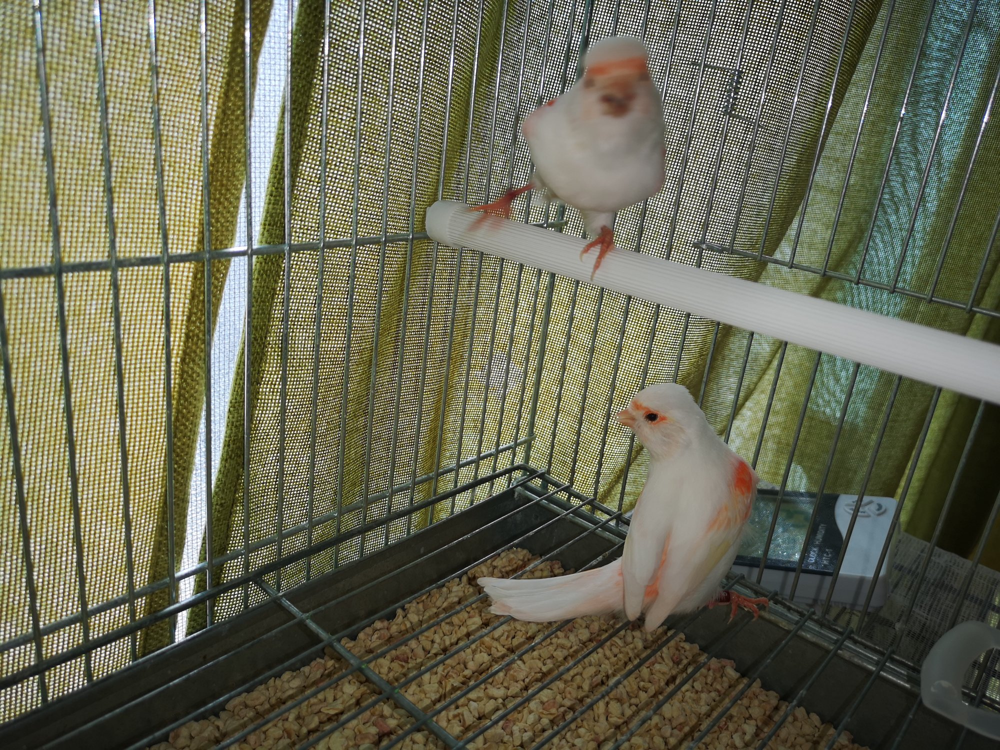 Queste foto sono di due sorelle femmine del soggetto iniziale, loro per esempio mi sembrano abbastanza bianche e gessate come femmine, ovviamente non da accoppiare col fratello ma con un canarino da caratteristiche simili. Loro hanno dorature meno evidenti nonostante abbiano avuto la stessa alimentazione.