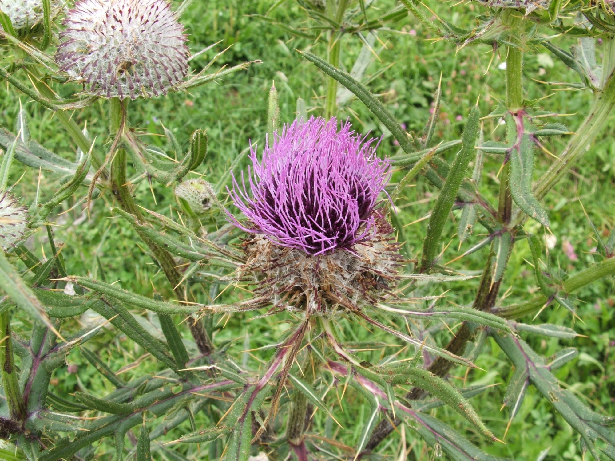 Ho trovato dalle mie parti questi cardi, confrontando le foto non credo sia cardo mariano, e poi sebbene il fiore sia uguale alcuni hanno il gambo senza spine ma le foglie pungono lo stesso, altri hanno il gambo con le spine e pungono mooolto di più.