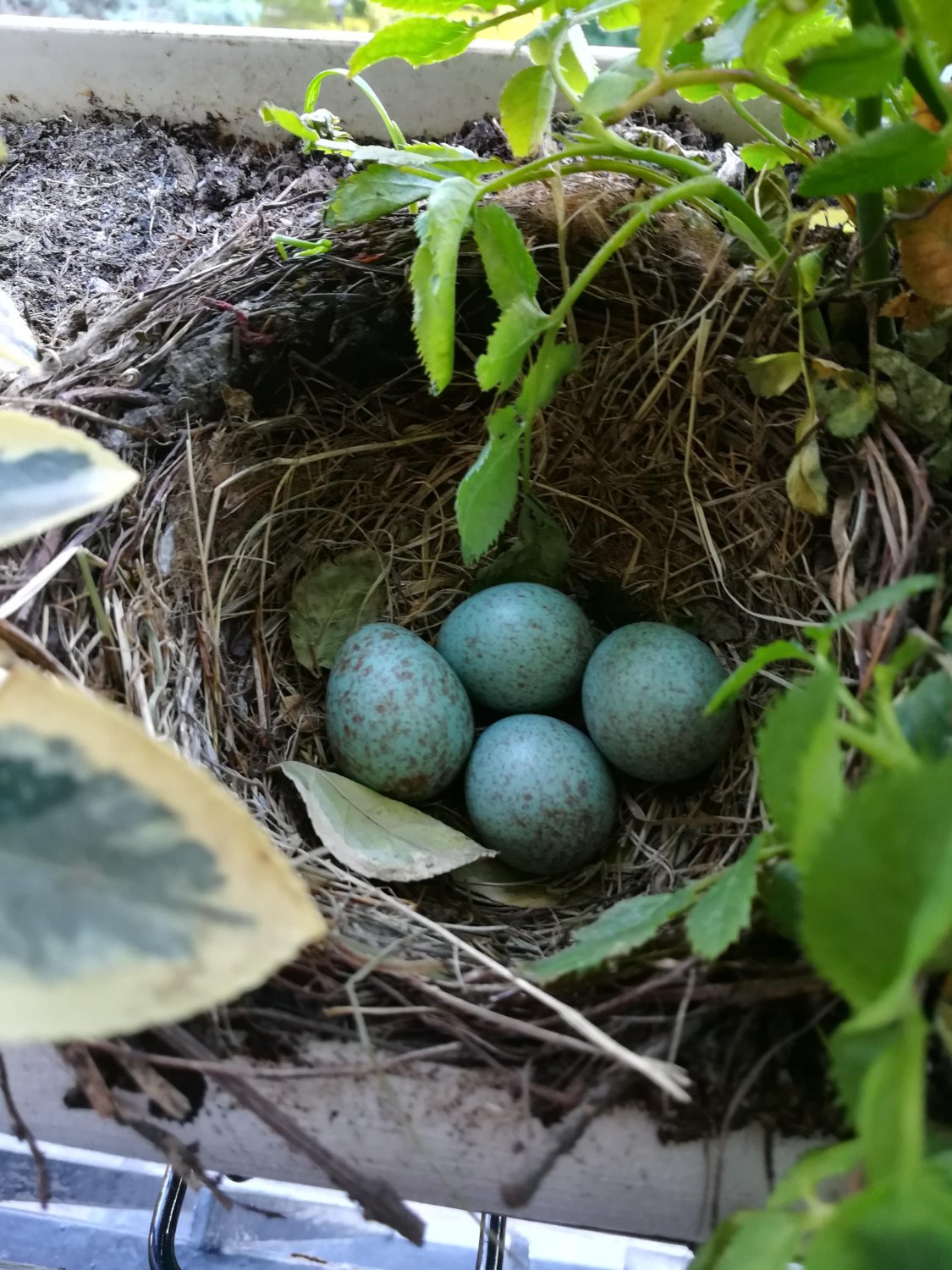 Il 5 giugno trovo tra 2 piante di un vaso che ho fuori al mio balcone al piano 5, il nido come da foto in allegato. All'inizio era un uovo poi son diventate 4. Se non erro sono di Merla. Ho visto lei covare per qualche giorno e quando uscivo fuori al balcone per innaffiare le piante si fiondava giù nell'albero del giardino e aspettava che finissi. Sono stato fuori casa per 10 giorni ed al mio ritorno (il 16 giugno) ho visto il nido come da seconda foto. Un merlo appena nato tenerissimo e 2 uova (del quarto uovo nessun segno). Dato che la pianta accanto (una rosa) era davvero mal messa, piena di parassiti, ho spruzzato un po di soluzione per le piante contro i parassiti. Il giorno dopo ho trovato il nido con solo un uovo e mi sono reso conto di aver fatto una cavolata. La Merla non torna più a covarlo. Non so cosa sia successo alle altre 2 uova sparite, o al merlo appena nato. Per di più non so cosa fare di quel nido con un solo uovo che ho ancora tra le piante. Mi date qualche suggerimento e magari qualche ipotesi di cosa possa essere successo?