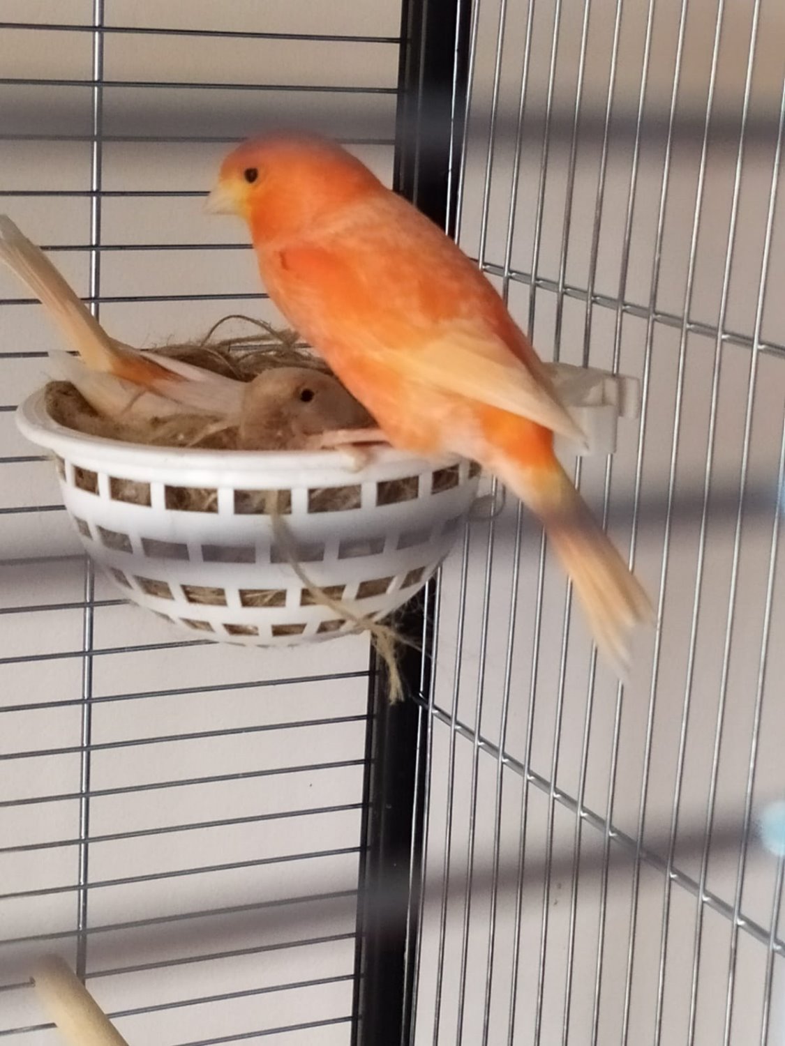 1a foto il canarino è un rosso pezzato ? la 2a si vede malissimo, è un nero rosso ?