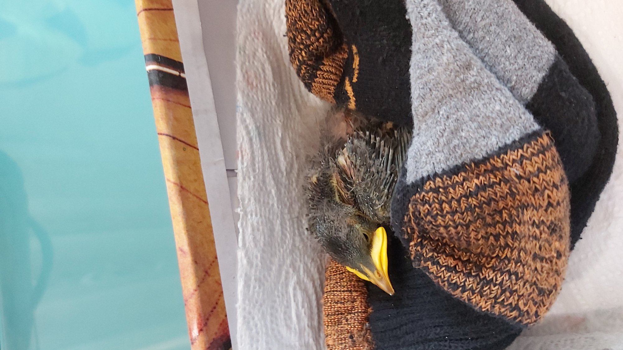 Il piccolo era ancora spennacchiato, quasi nessuna piuma sul corpo e occhietti ancora chiusi, per questo deduco abbia non piú di 5/6 giorni di vita... ieri l'ho nutrito una volta ogni mezz'ora (dalle 16 che l'ho trovato fino alle 20.30), con del macinato di carne magra e della mela, ad ogni pasto 2 gocce d'acqua.