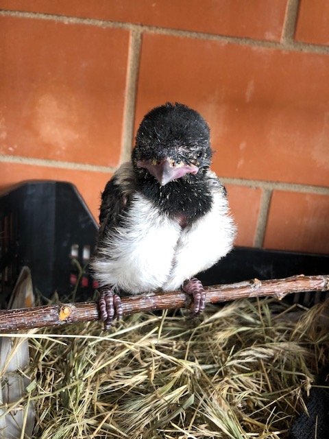 7 giorni fa ho trovato sotto l’albero di casa un pullo di gazza ladra (pica pica), era sotto al vento e tremava tanto, non riusciva a stare in equilibrio. Ho controllato se ci fosse la madre nei paraggi (so che continuano a fare lo svezzamento anche quando i piccoli non sono più nel nido), ma non è intervenuta. Mi dispiaceva vederlo così e l’ho portato a casa, l’ho messo fuori al terrazzo al riparo in una cassetta della frutta con giornali, paglia, un cappello e un vecchio asciugamano dove ripararsi dal vento e dal freddo durante la notte. Giorni fa, mentre portavo i miei cani a spasso, vicino allo stesso albero, ho trovato un altro pullo di gazza ormai morto (sicuramente era il fratellino), quindi penso di aver fatto bene a portarlo a casa, altrimenti avrebbe fatto la stessa fine!