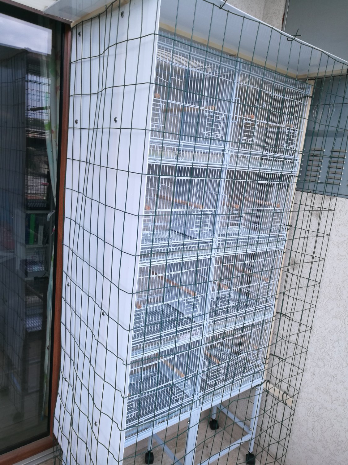Gabbia montata, domani metto copertura e fianco x ripararli da correnti d'aria...preferibile pannelli in plastica non trasparente? pensavo bianca che ripara e non attira il sole...consigli?