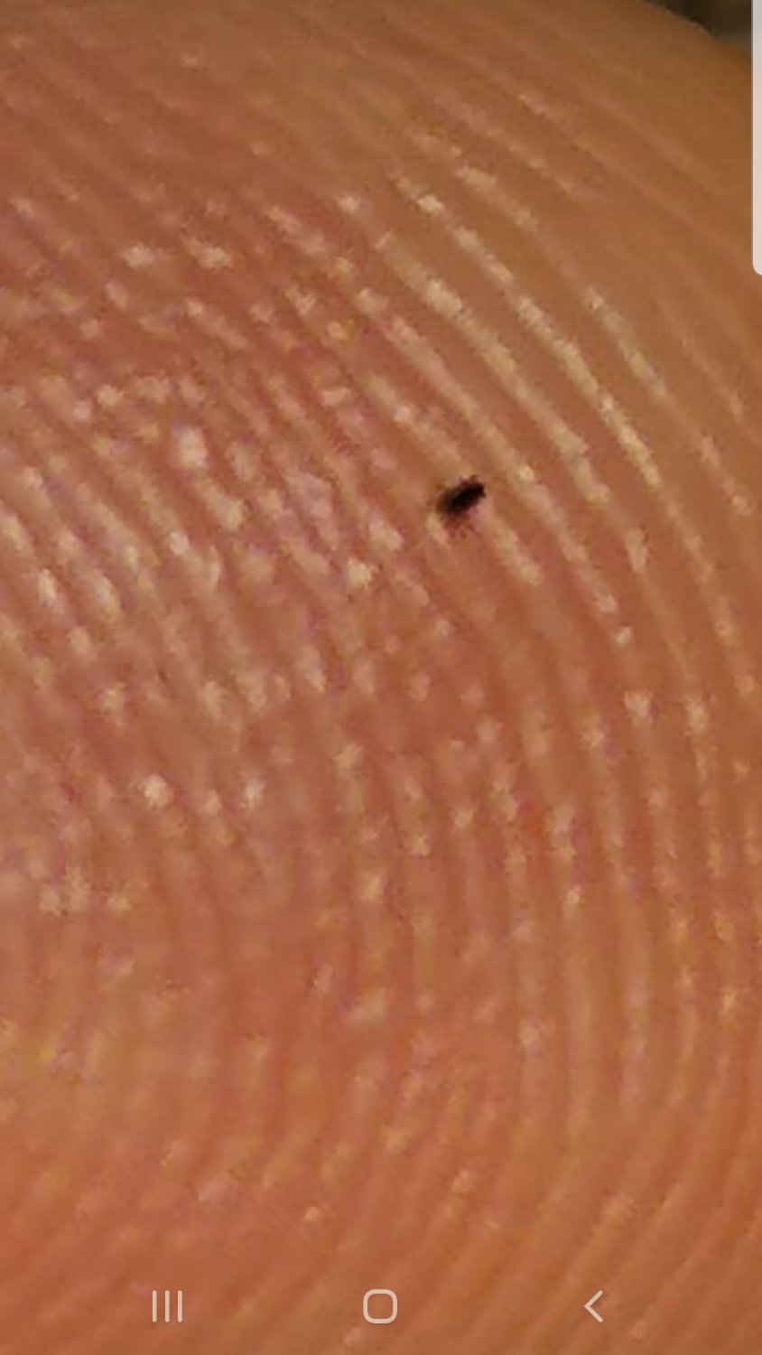 Già oggi, comunque, ho trovato un puntino nero. Non sapendo se si trattasse di polvere o di qualcos'altro, gli ho fatto una foto ingrandendolo con lo zoom. Beh, effettivamente sembra quasi che abbia delle zampette. Io però non ho mai visto un acaro...mi affido quindi a voi: allego la foto. Cosa ne pensate?